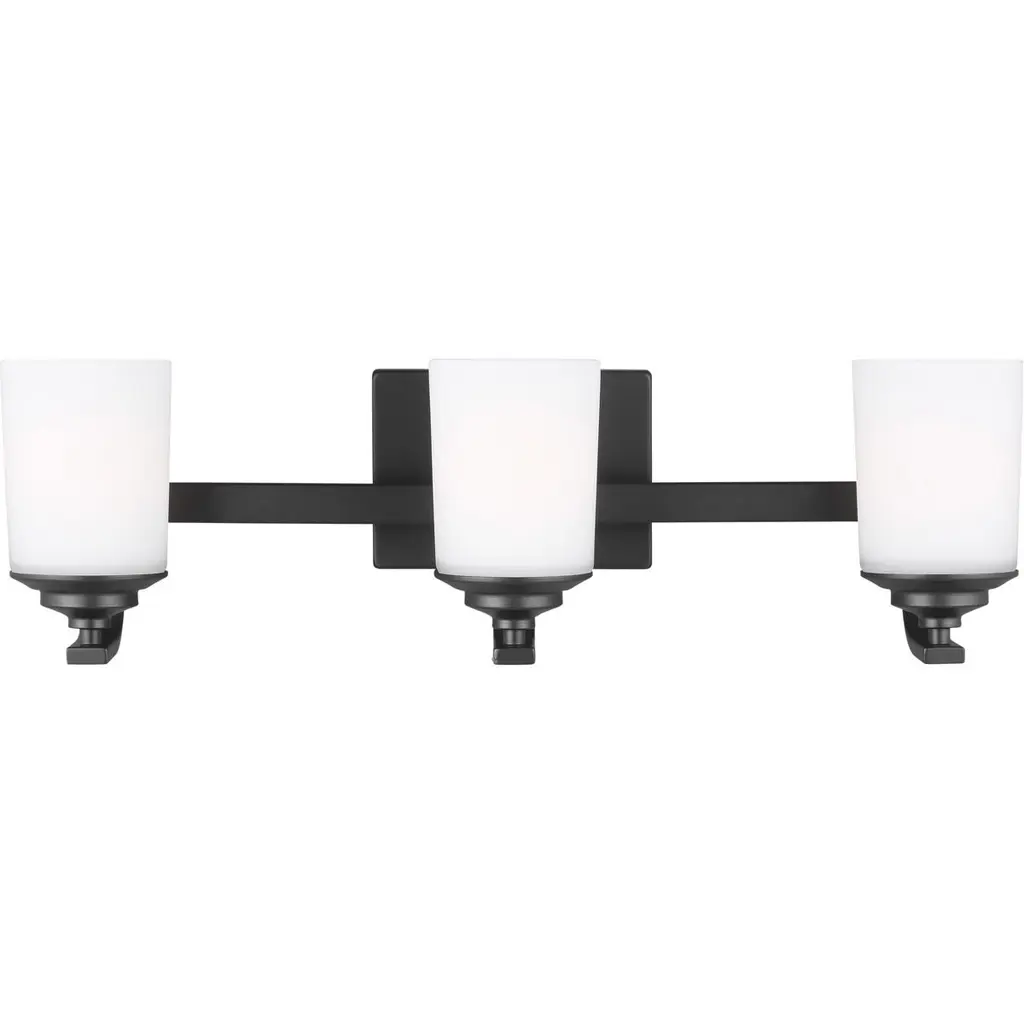 Belmont 3 Light Bath Bar Shown, Matte Black Finish With 2.5" White Muslin