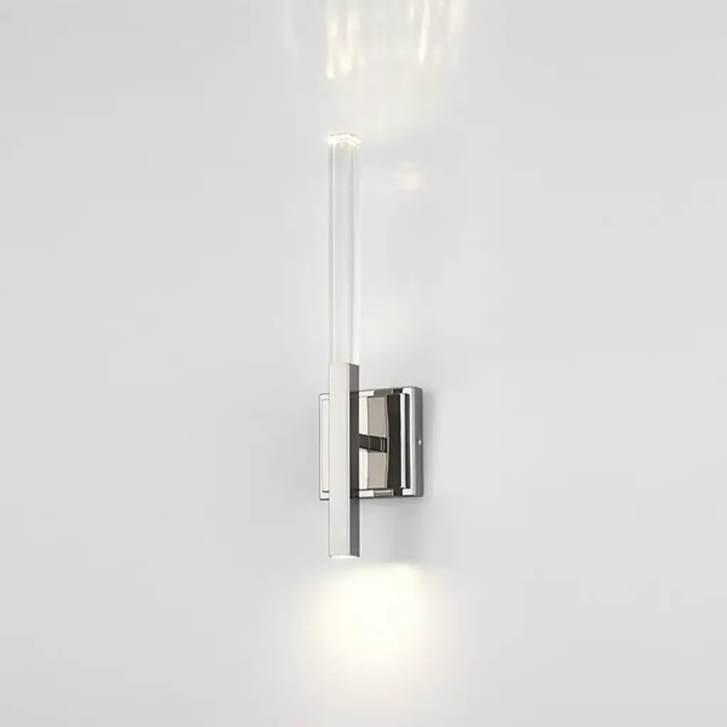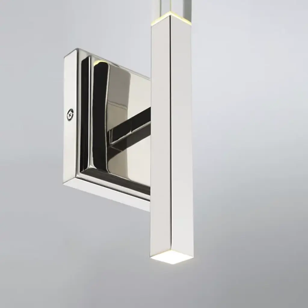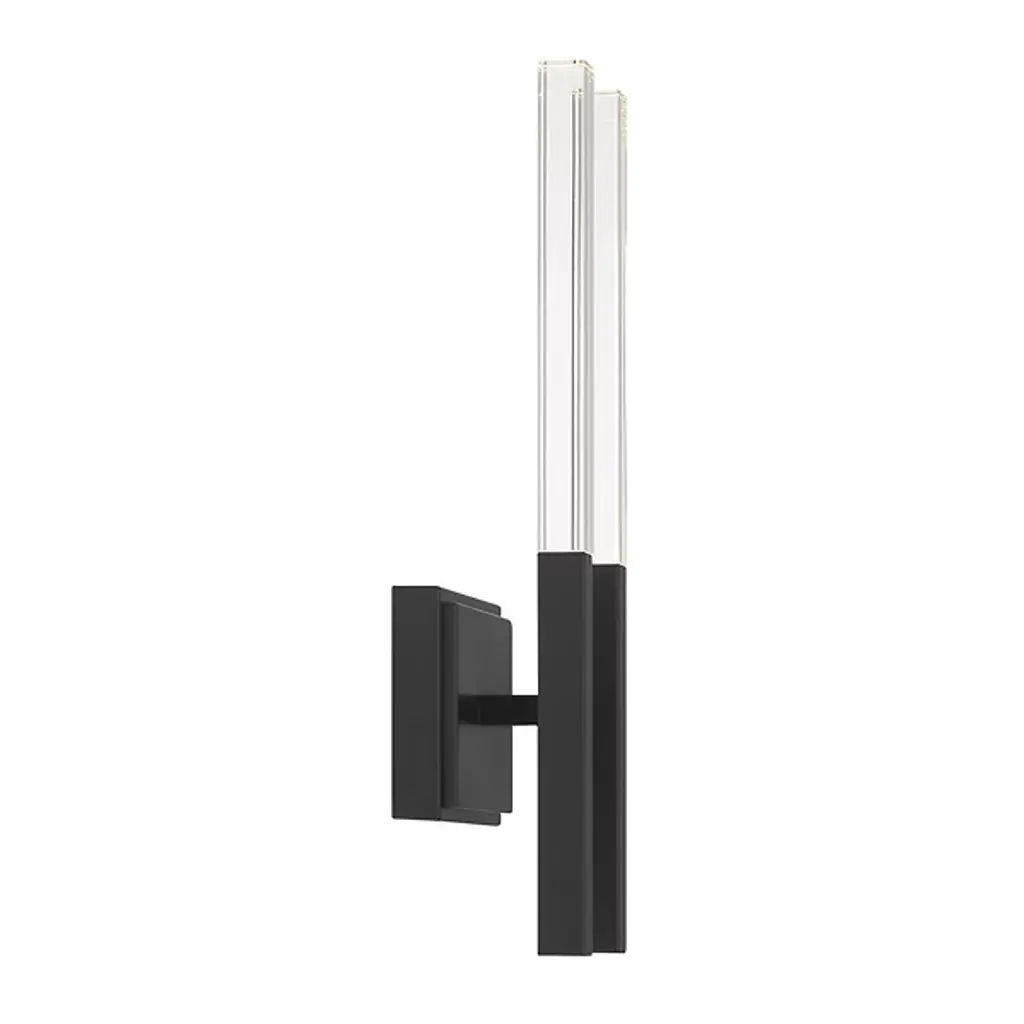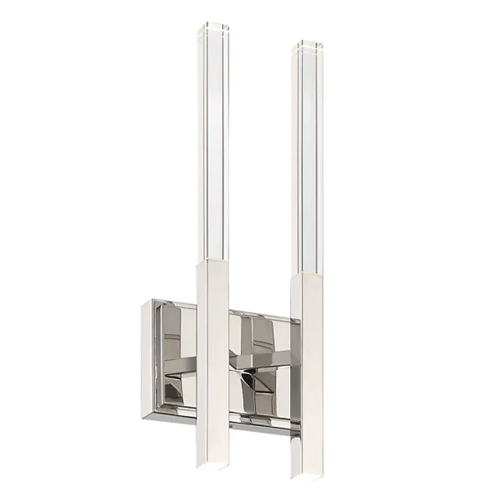 The Benicio LED Vanity Light from Eurofase showcases a crystal, rectangular prism which boasts sharp, beveled edges. Solid glass vertical spires cast vivid refractions across wall and ceiling surfaces. Benicio’s thin and simple geometric shape lends itself to luxurious and contemporary environments while providing a dual LED light source. Easily adjust the brightness level of this light fixture by using an ELV dimmer.