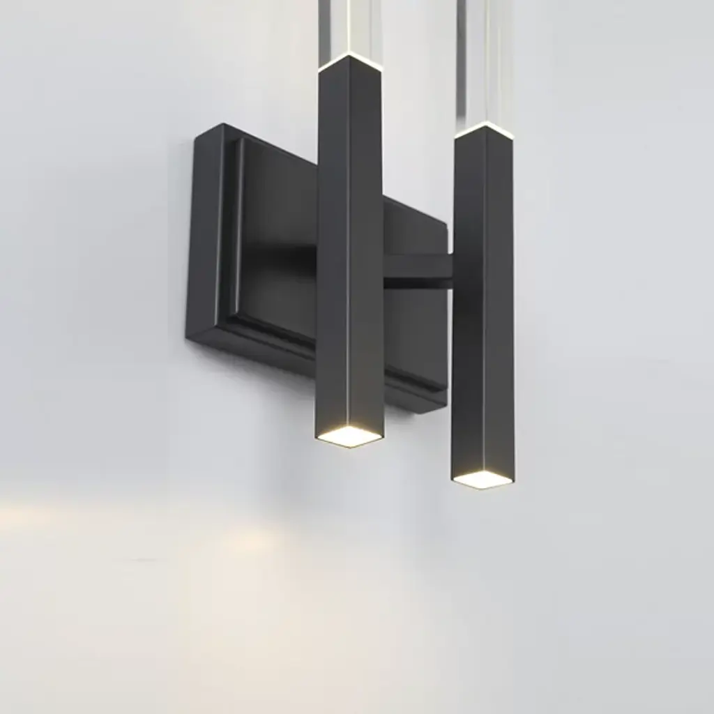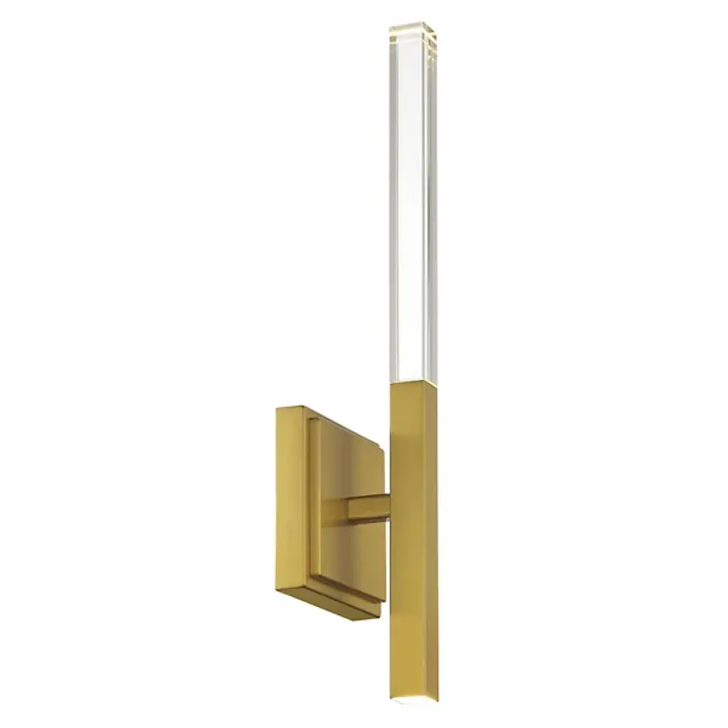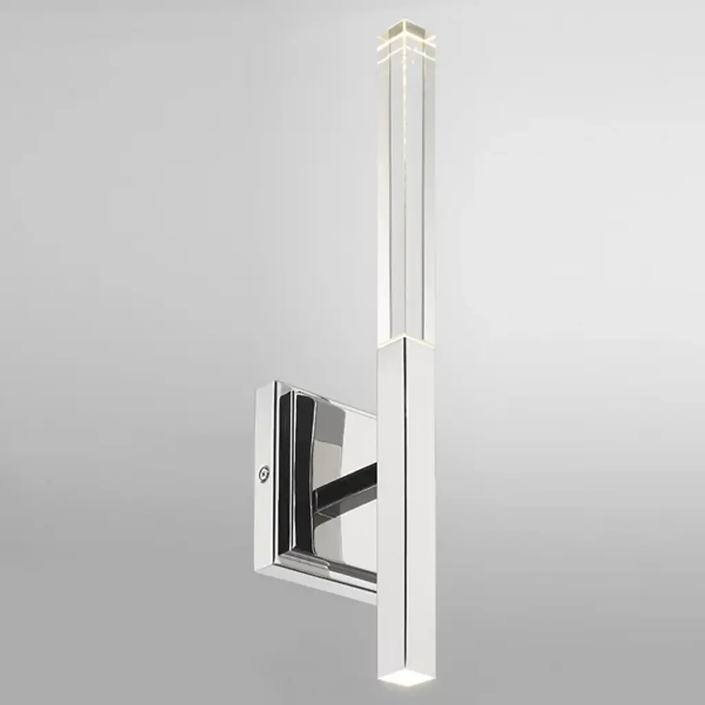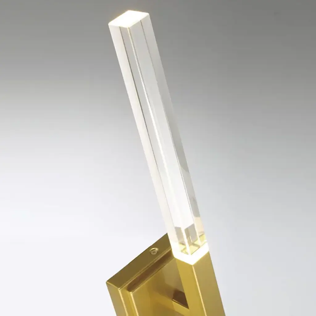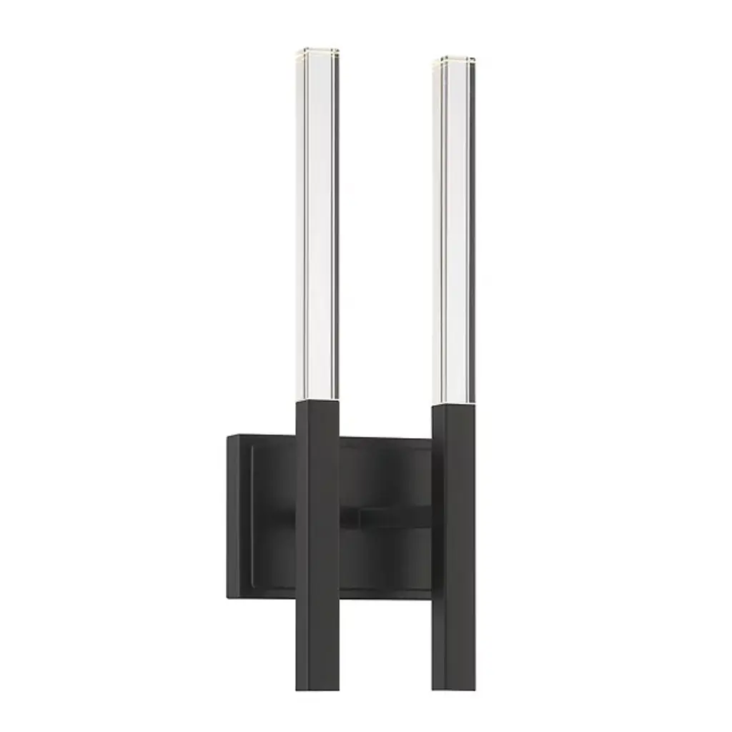 The Benicio LED Vanity Light from Eurofase showcases a crystal, rectangular prism which boasts sharp, beveled edges. Solid glass vertical spires cast vivid refractions across wall and ceiling surfaces. Benicio’s thin and simple geometric shape lends itself to luxurious and contemporary environments while providing a dual LED light source. Easily adjust the brightness level of this light fixture by using an ELV dimmer.