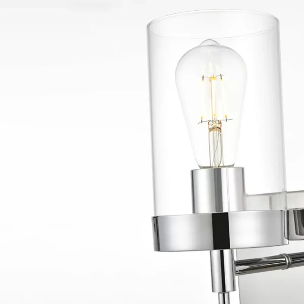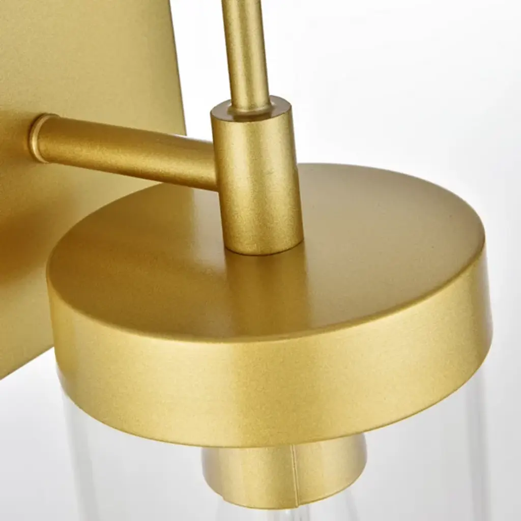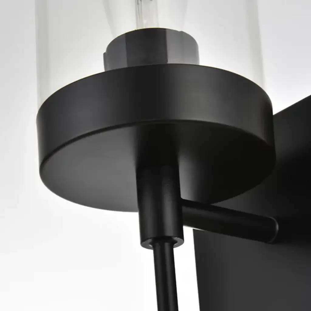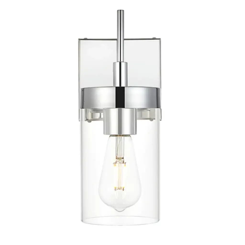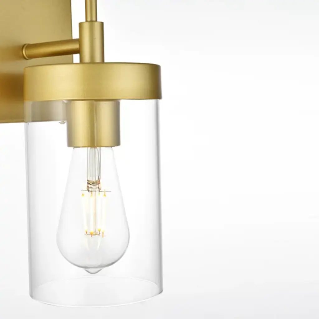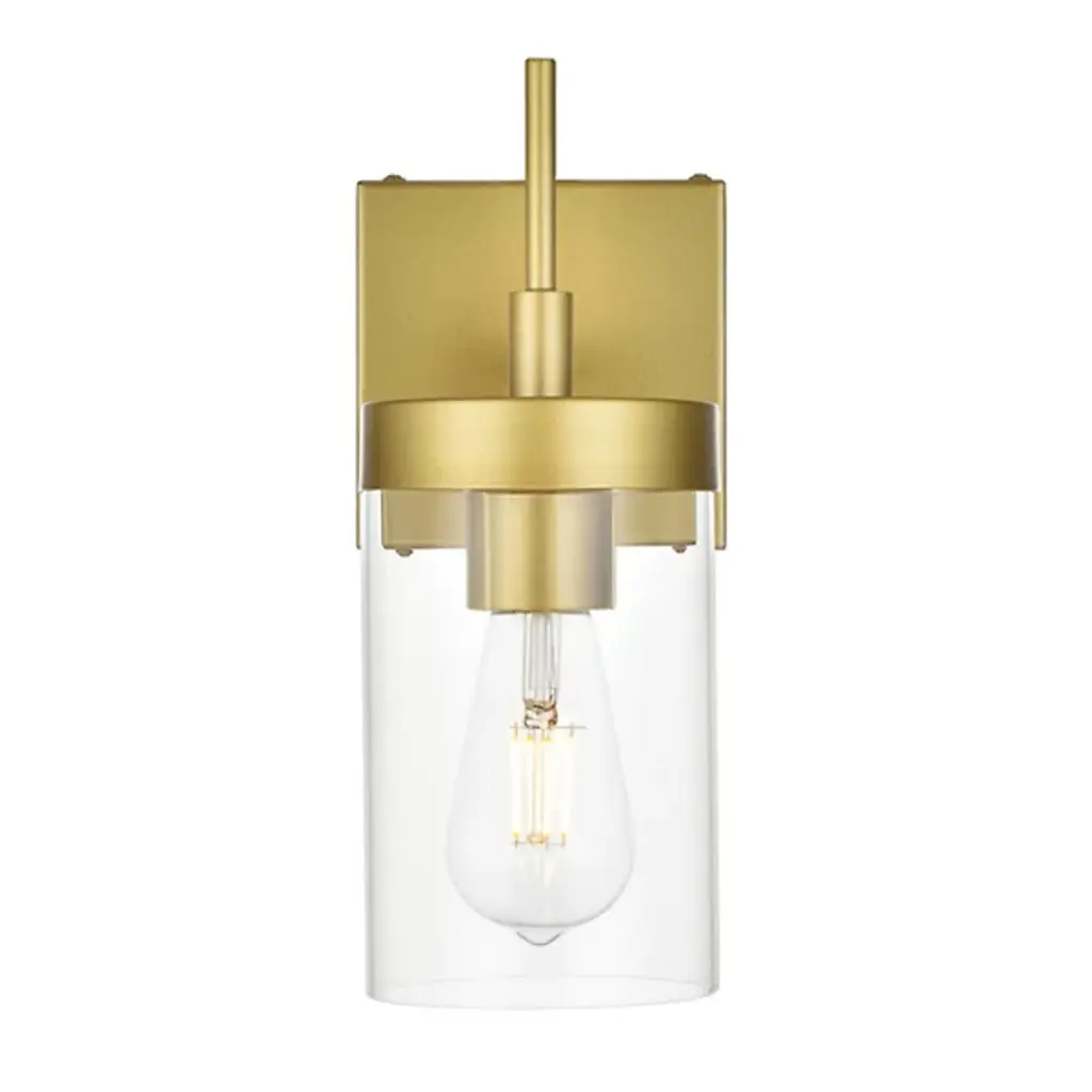 Radiating contemporary elegance, the Bennia Bath Sconce by Huxe boasts a curved metal arm supporting a clear bell glass shade. Its sleek design highlights straight-line details, from the backplate to the slender arm, infusing modernity into any setting. Compatible with dimmers, it offers adjustable lighting for different times of the day. With flexible placement options such as an uplight or downlight and a damp location rating, it's perfect for bathroom vanities, combining style with practicality seamlessly.