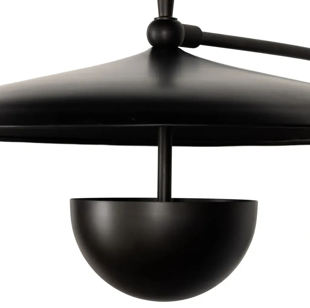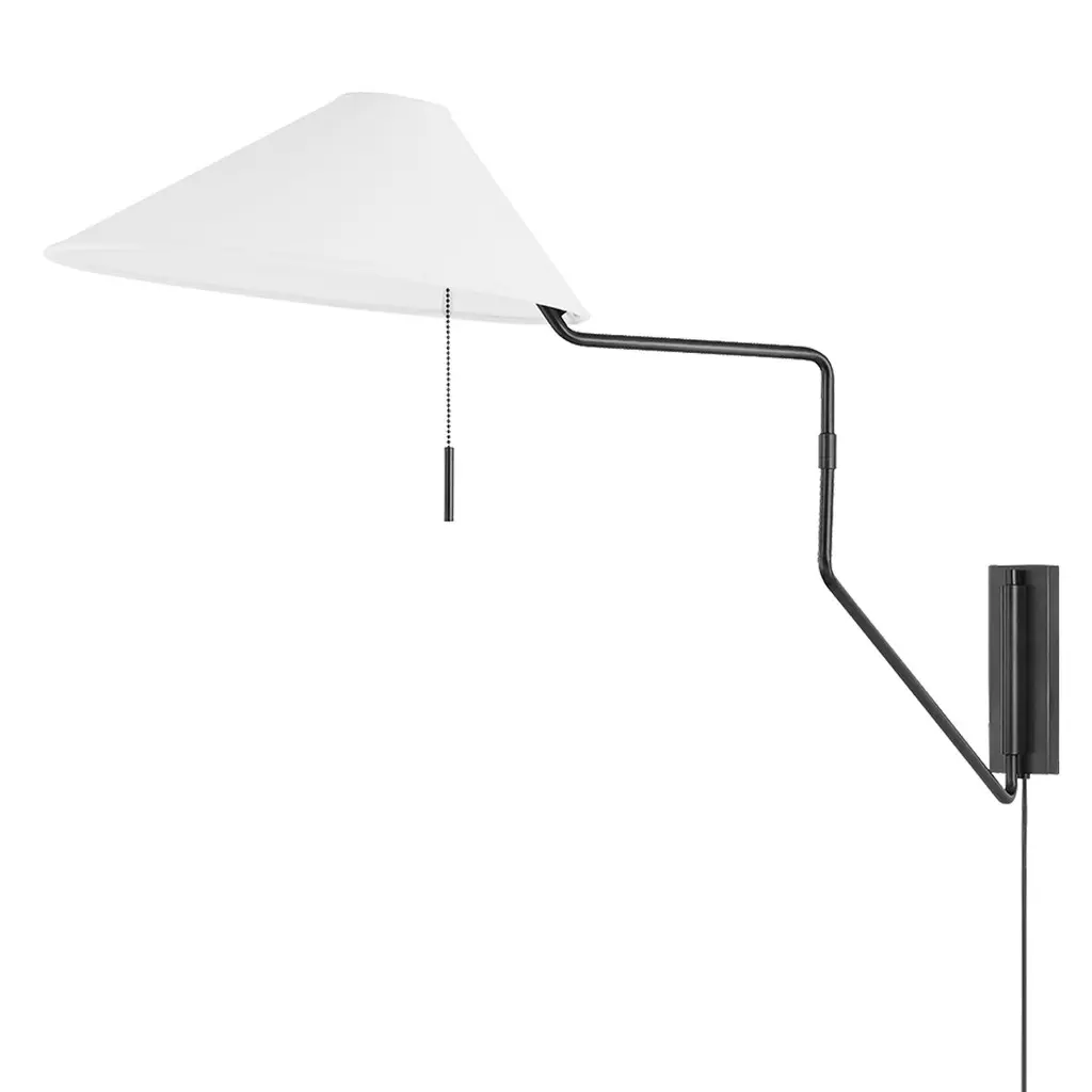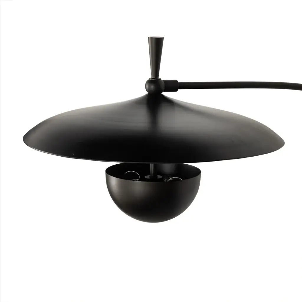 Make a dramatic style statement with a slim yet oversize iron sconce inspired by midcentury design. Light is located within lower dish so it illuminates upward.