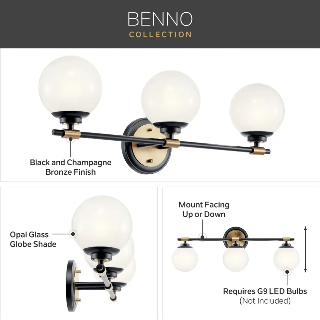 The Benno wall sconce effortlessly accents your room''s decor in modern elegance. Benno glows softly through its milky white opal glass and can be mounted facing up or down. Clean details highlight its mixed elegant finishes.