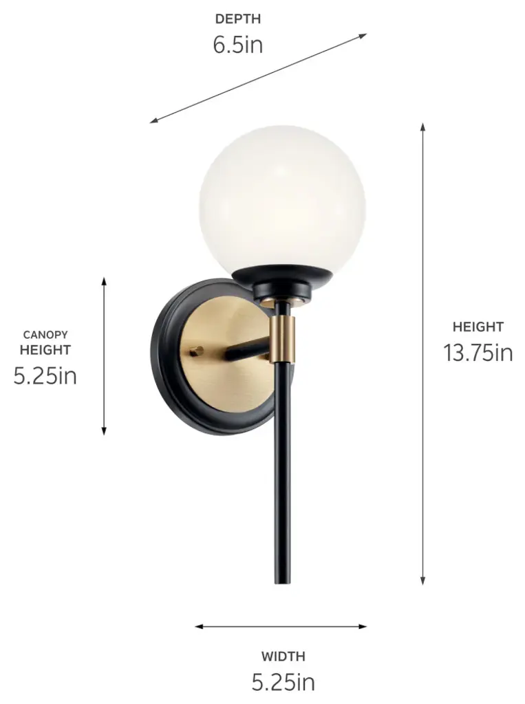 Benno 13.75" 1 Light Sconce With Opal Glass, Black And Champagne Bronze