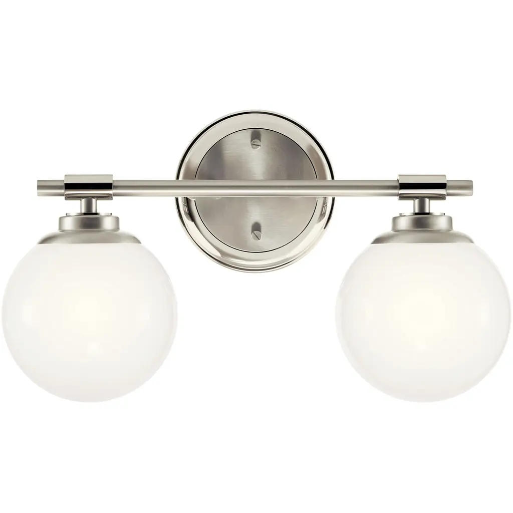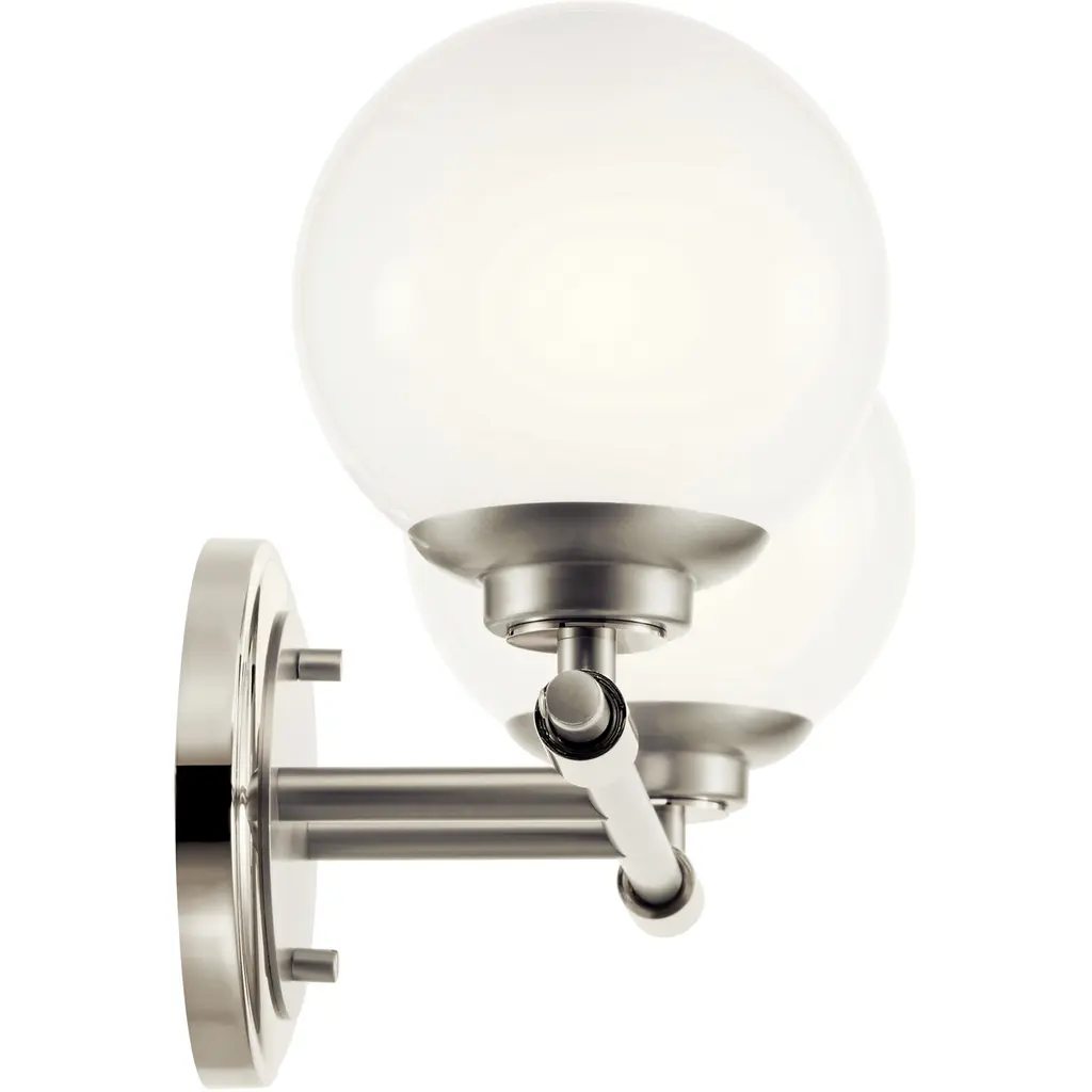 Benno 14.75 Inch 2 Light Vanity with Opal Glass in Polished Nickel and Brushed Nickel