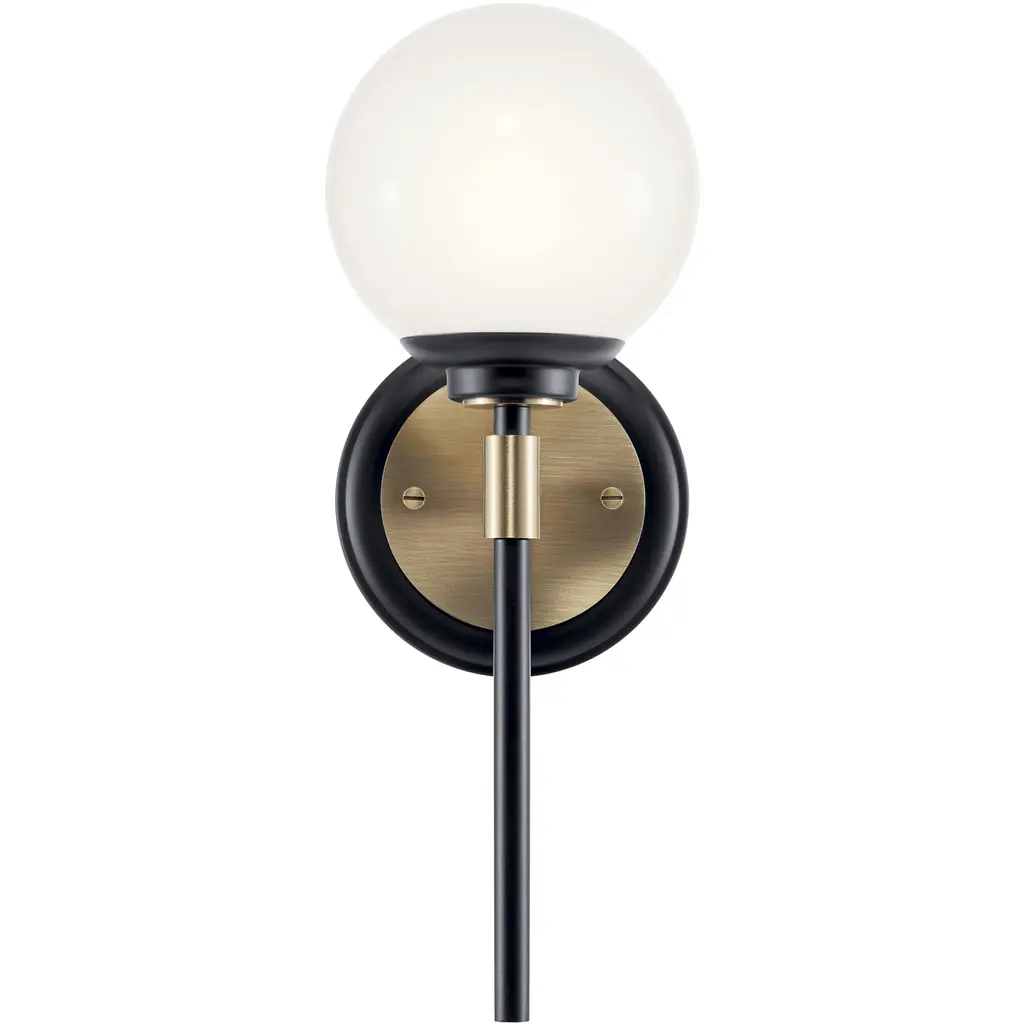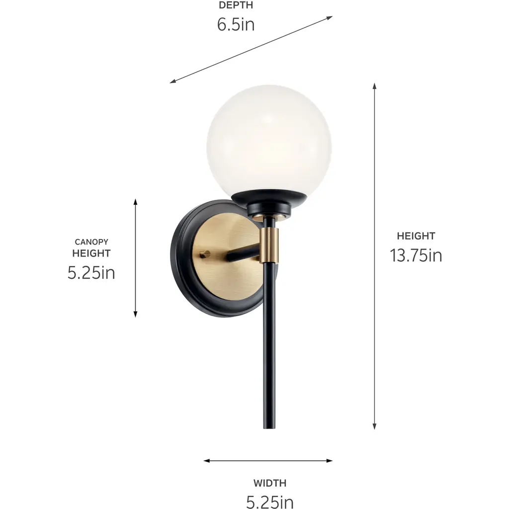 Benno 13.75 Inch 1 Light Wall Sconce with Opal Glass in Black and Champagne Bronze