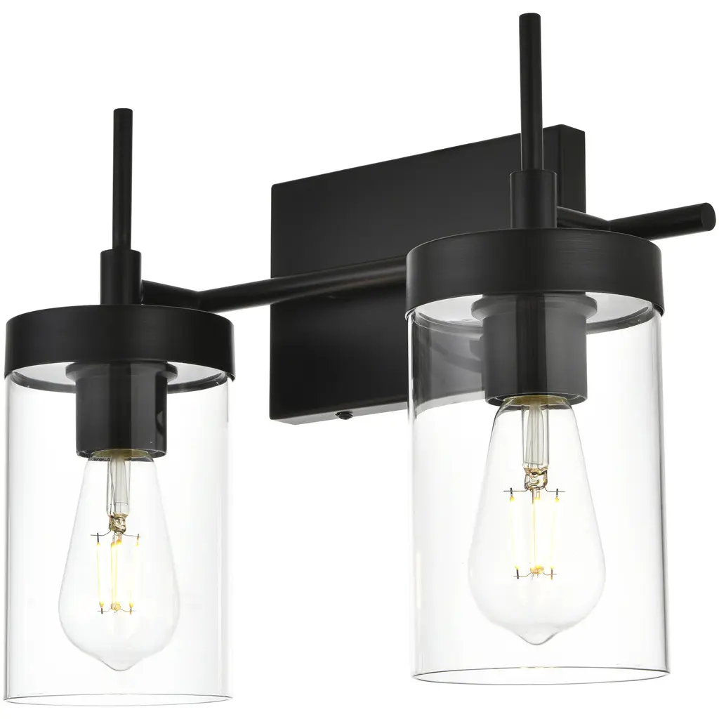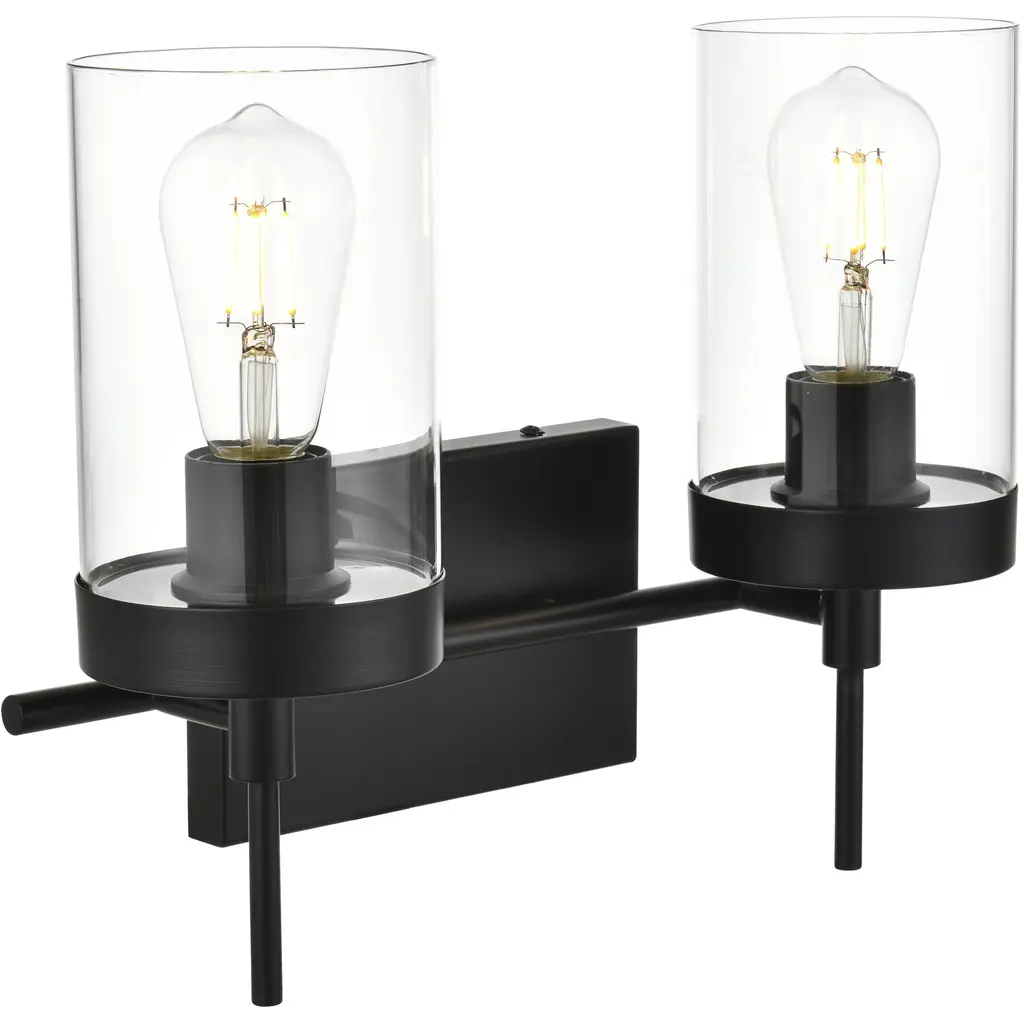 Benny 2 Light 14 Inch Black Bath Sconce Wall Light