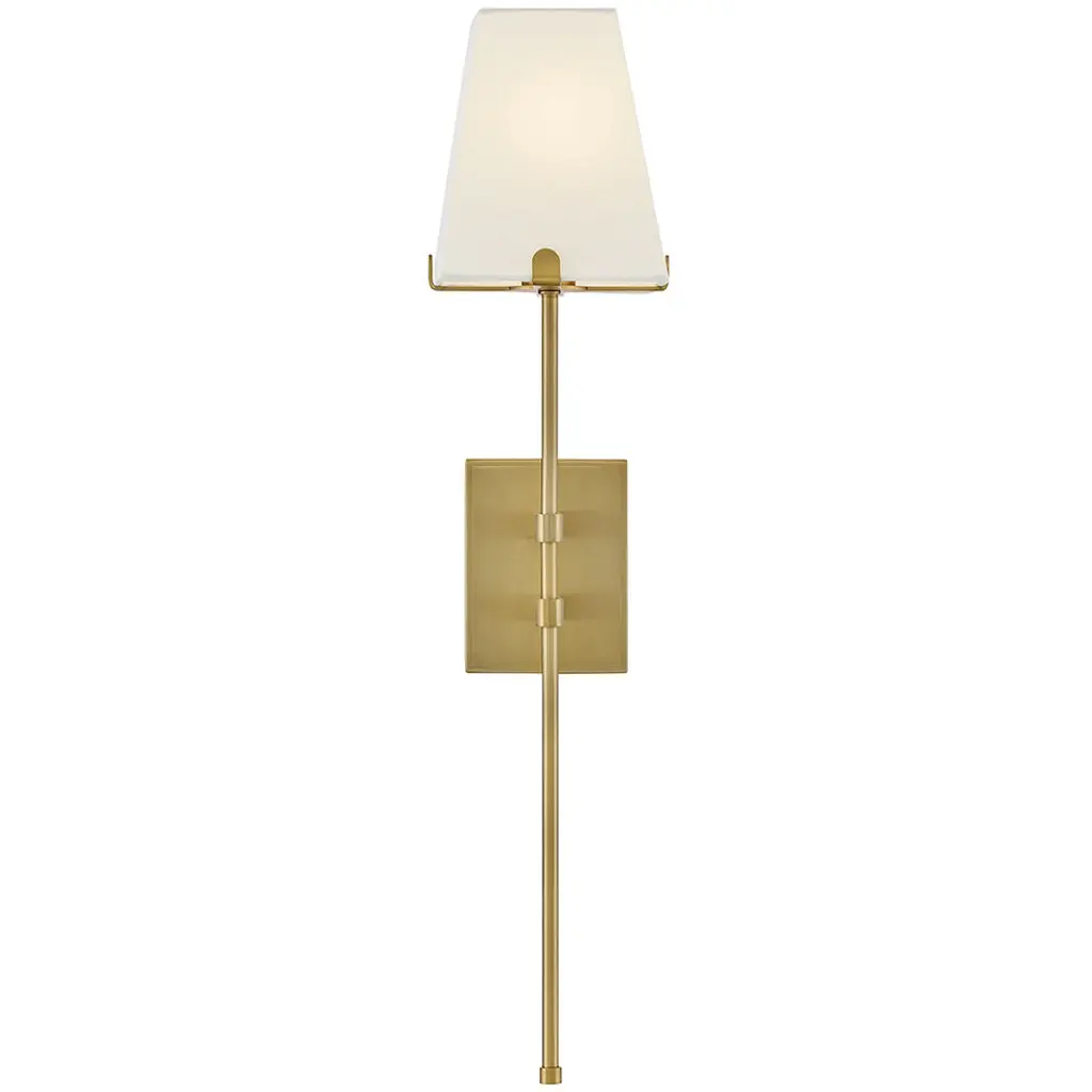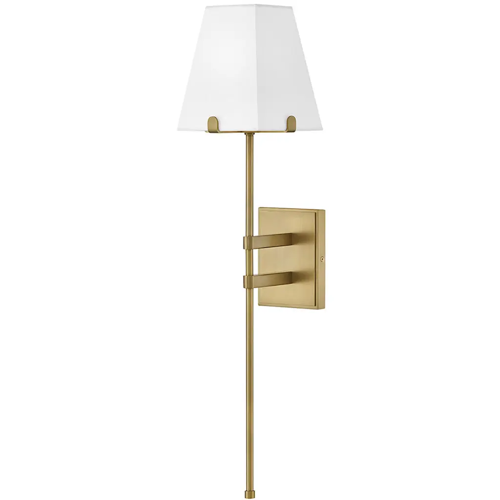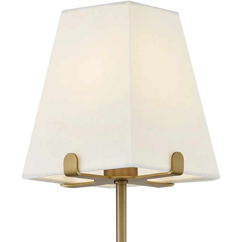 Tall and minimalist Bentons simply chic silhouette easily complements any space or décor style. White hardback linen shades are supported by a slim stem and prongs in a Black or Lacquered Brass finish.