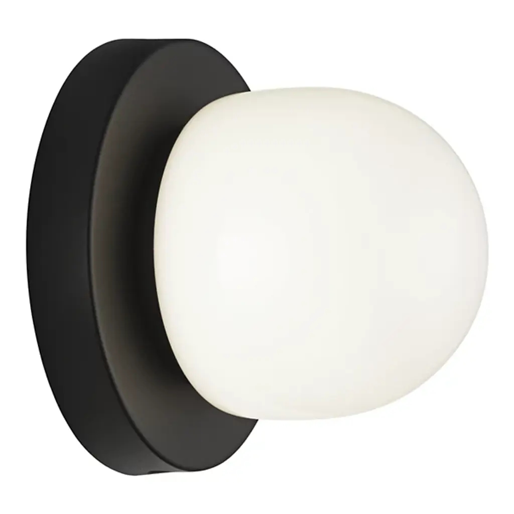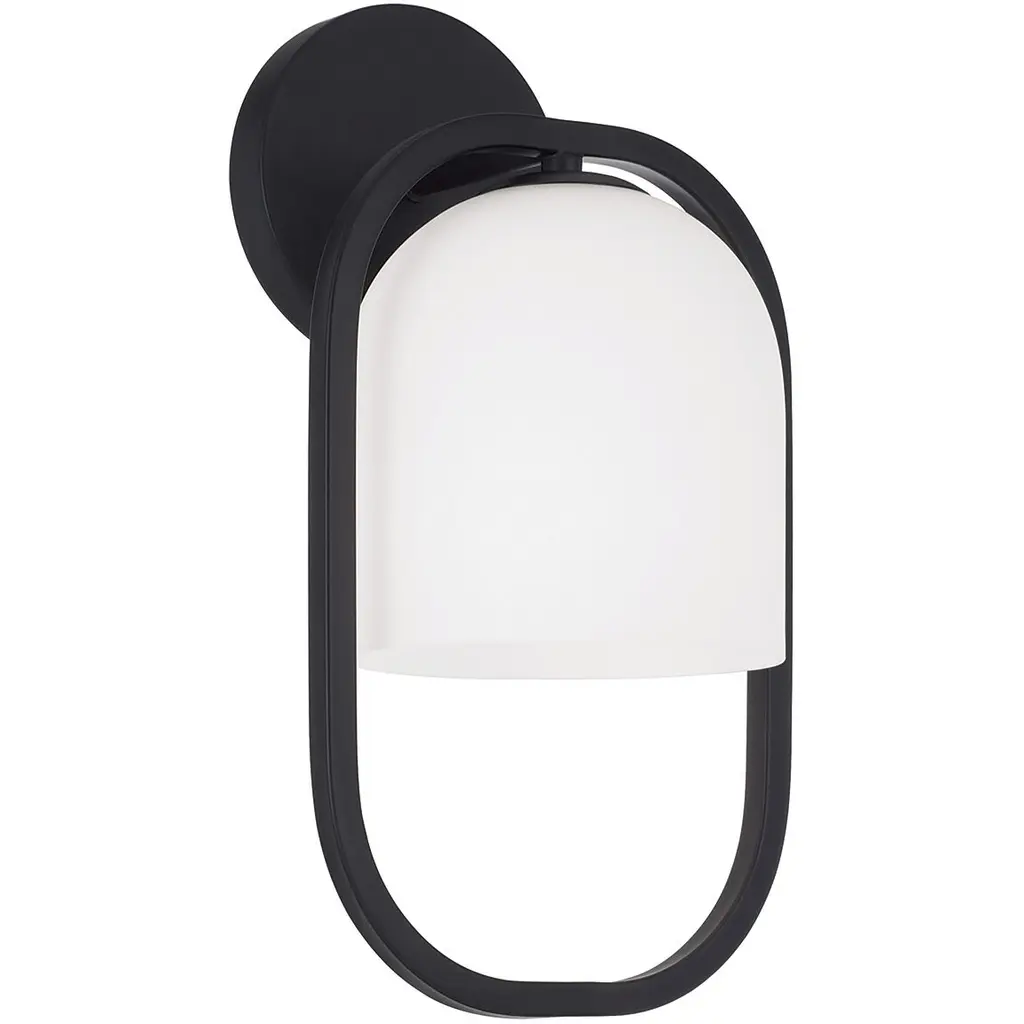 The Benvolio Wall Sconce by Huxe extends its bold, elegant character to indoor wall or hallway spaces. A striking fixture well-suited to contemporary or minimalist décor, it uses a circular metal wall plate to anchor itself while extending a ring accent around a single lamp that retains both lamping and a diffuser comprised of two glass layers. The inner layer is made of translucent opal glass that captures excess brightness, while the clear glass exterior provides a final, sleek refinement.