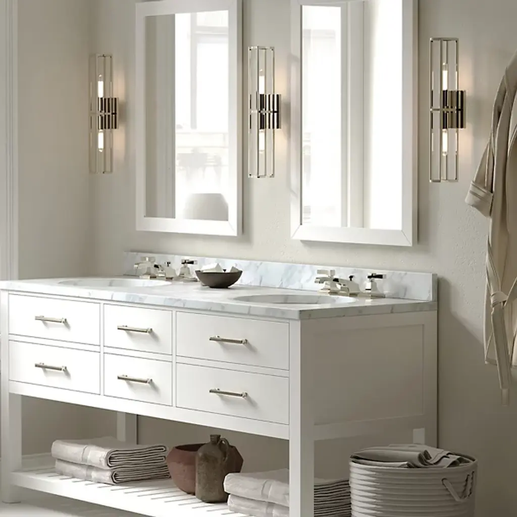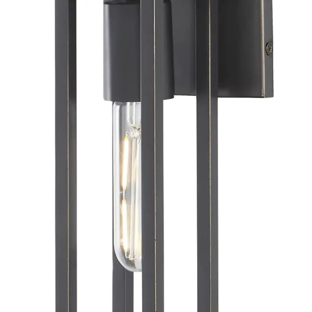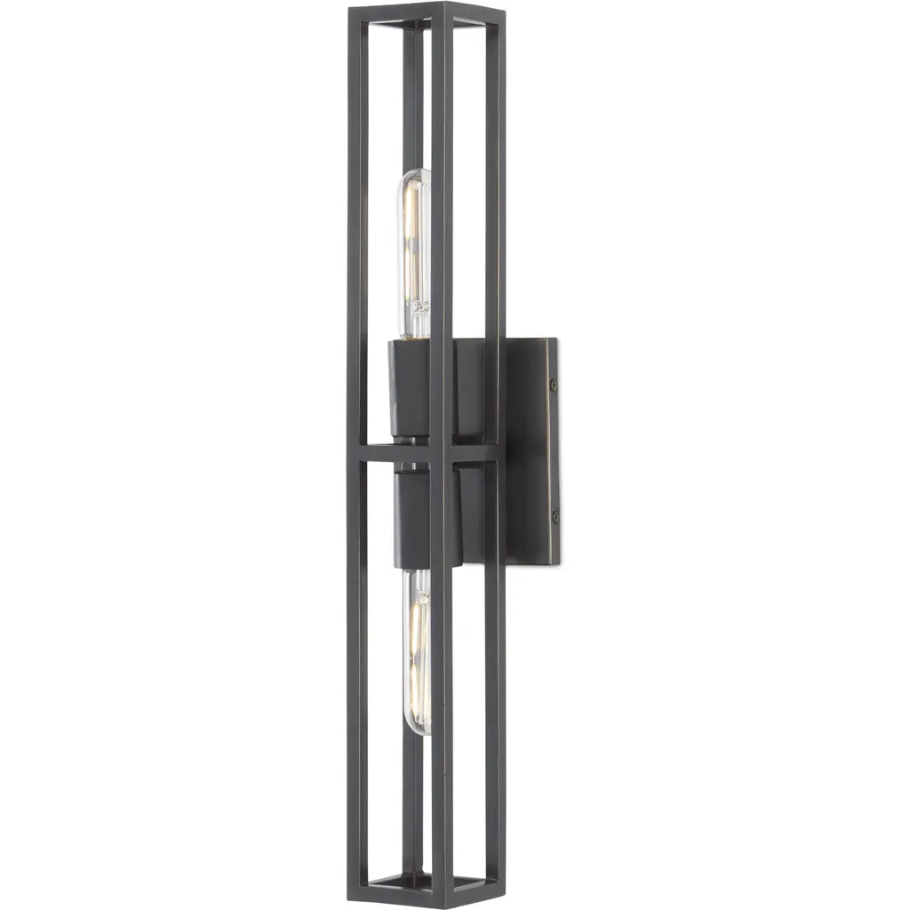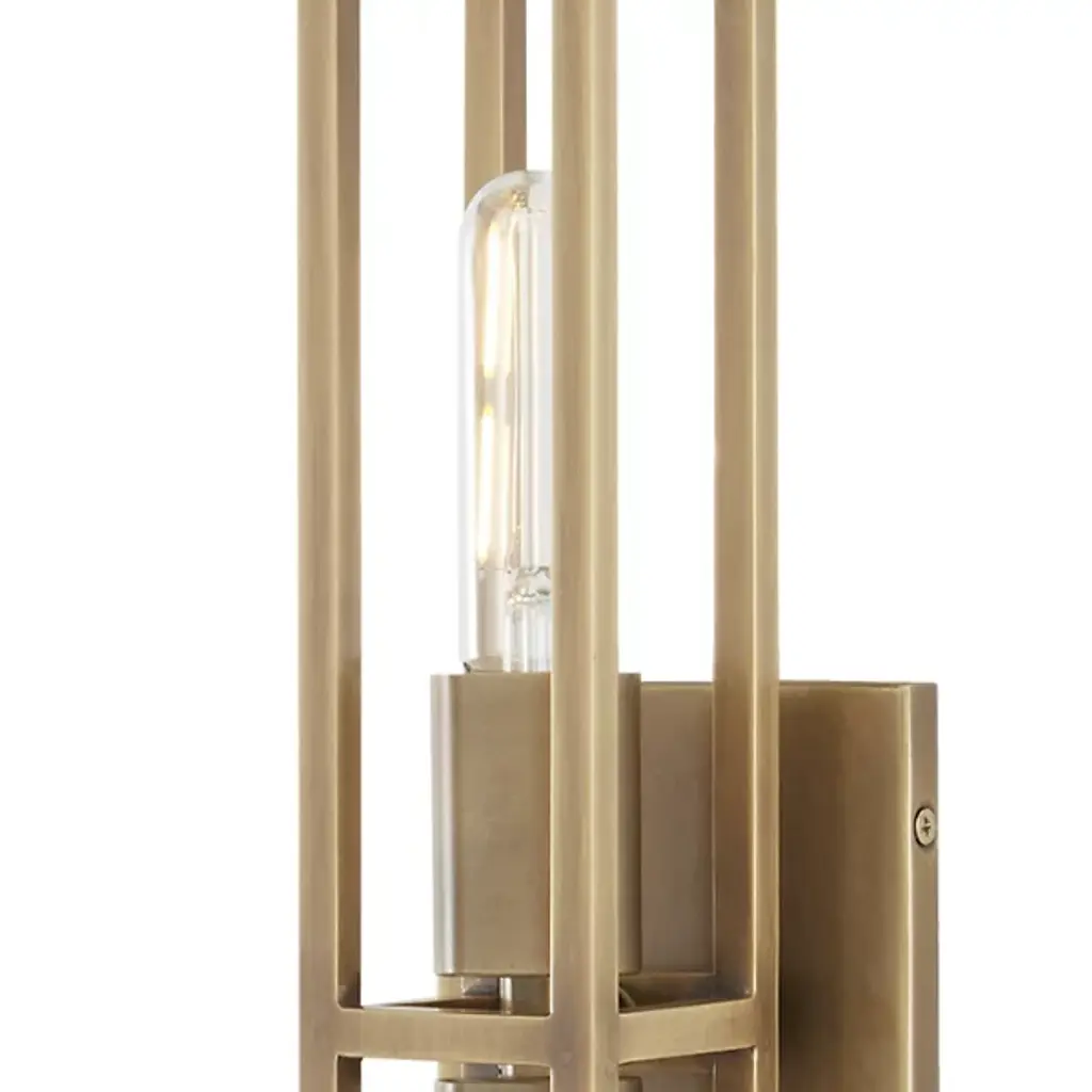 Catch the eye of guests to your home with the unique silhouette of the Bergen Wall Sconce from Currey & Company. Mounting directly to the wall, this piece features a small square backplate that upholds a lengthy and open rectangular frame. The frame includes a pair of large bulbs that face up and down, providing a bright and even glow that fully transforms the surrounding space when they come to life.