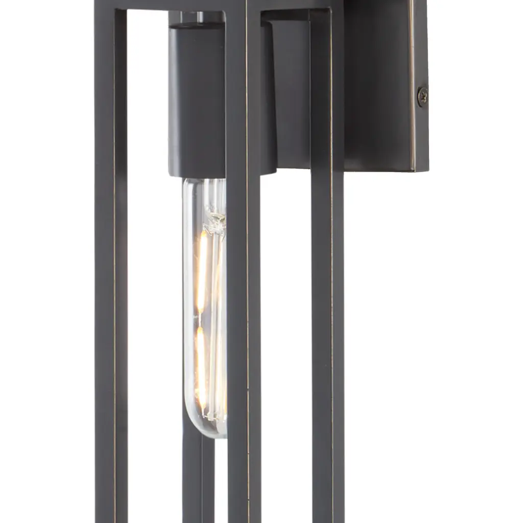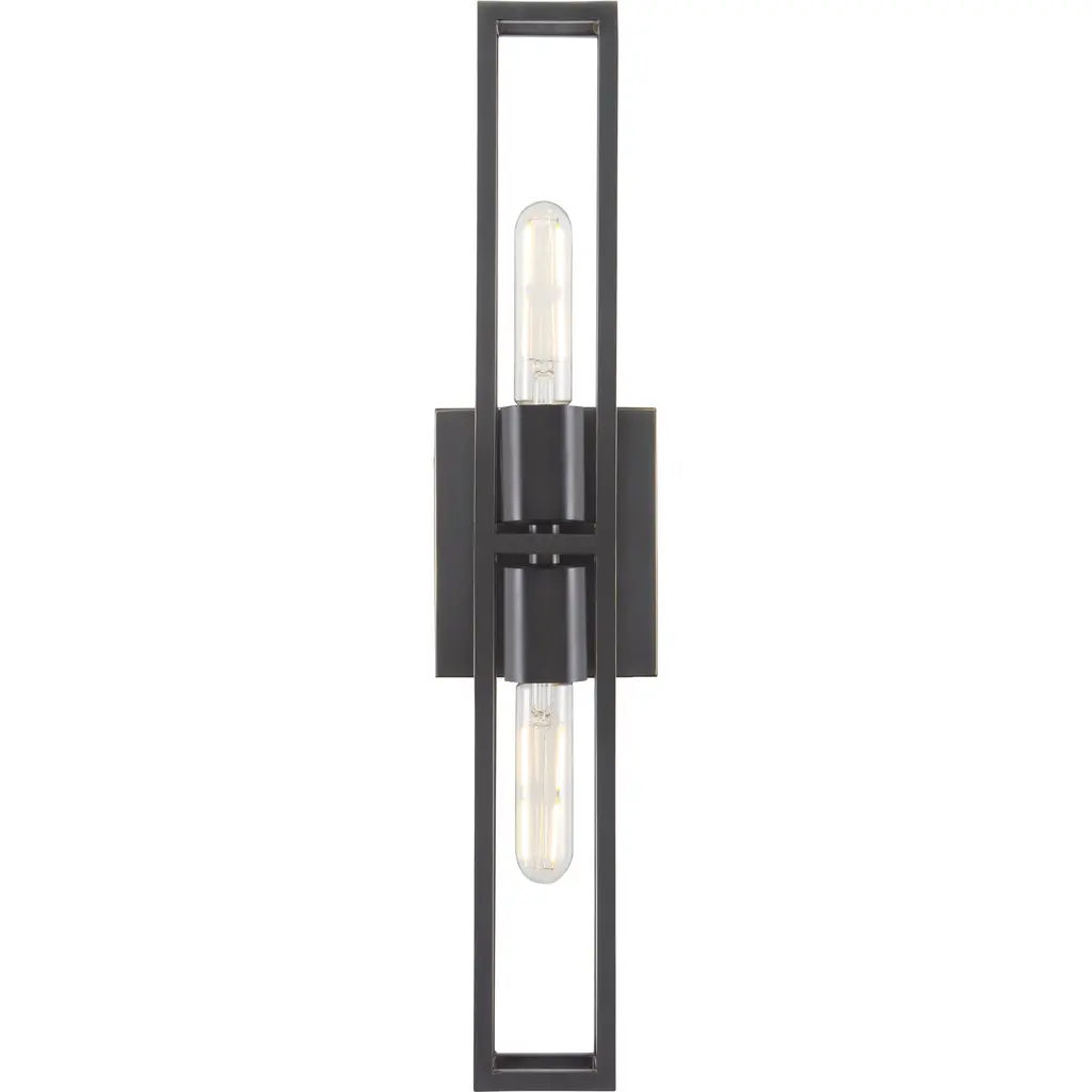 Floating within an elongated cage, the two bulbs that illuminate the Bergen Bronze Wall Sconce are as lean as the overall profile of the black sconce. Made of metal in an oil-rubbed bronze finish, the Bergen has a sophistication to its lines given they are pared down and perfectly formed. We also offer the Bergen in polished nickel and antique brass finishes, each of the sconces ADA compliant and certified for damp locations. Part of the Bagno Collection of wall sconces designed for bathroom spaces.