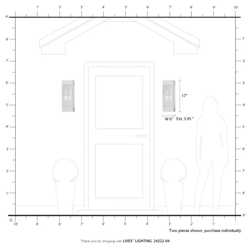 The intricate details of the black finish on this outdoor wall sconce from the Malmo collection creates delightful shadow patterns on adjoining wall surfaces and walkways. This stainless steel fixture features glass panels finished clear on the outside and sandblasted on the inside.Bulb Wattage: 40Number of Bulbs: 2Type of Bulb: Medium BaseBulbs Included: N