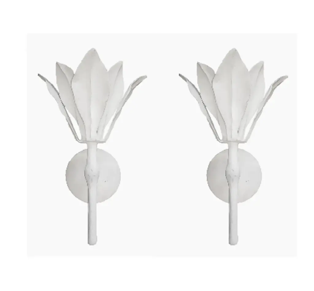 Bespoke handcrafted plaster single fleur sconces. These sconces are UL listed. Please note these sconces are made to order. Lead time is 8-10 weeks. Please see our other listing for double fleur sconces.