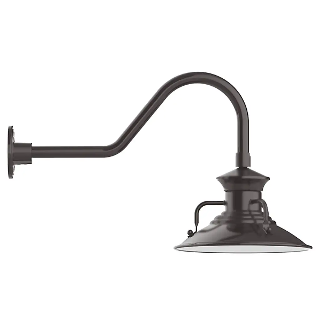 The Betty Outdoor Gooseneck Wall Sconce by Alder & Ore has a handsome, industrial-inspired design that is pulled from vintage 1920s fixtures. Featuring a classic, graceful gooseneck arm that allows this design to extend out from walls, this sconce is ideal for illuminating signs and awnings at night. The shade is made from heavy-duty spun aluminum with structured handles framing its top. Durably built, this piece is made to withstand the elements, lending a welcoming touch to outdoor locations looking for a functional layer of light.