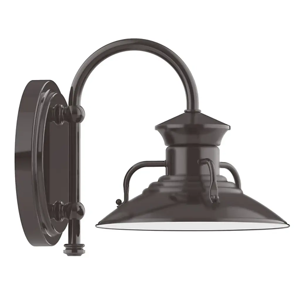 The Betty Outdoor Wall Sconce by Alder & Ore features a heavy-duty, spun aluminum shade and brings a bright touch to its surroundings. The flared shade of this wall sconce has a retro feel and is topped with a rounded cap and structured arms for a layered look that is at home in a wide range of spaces. Casting plenty of illumination down onto its environment, this wall sconce is completed with a polyester powder-coat finish, allowing this fixture to resist scratches and retain its color.