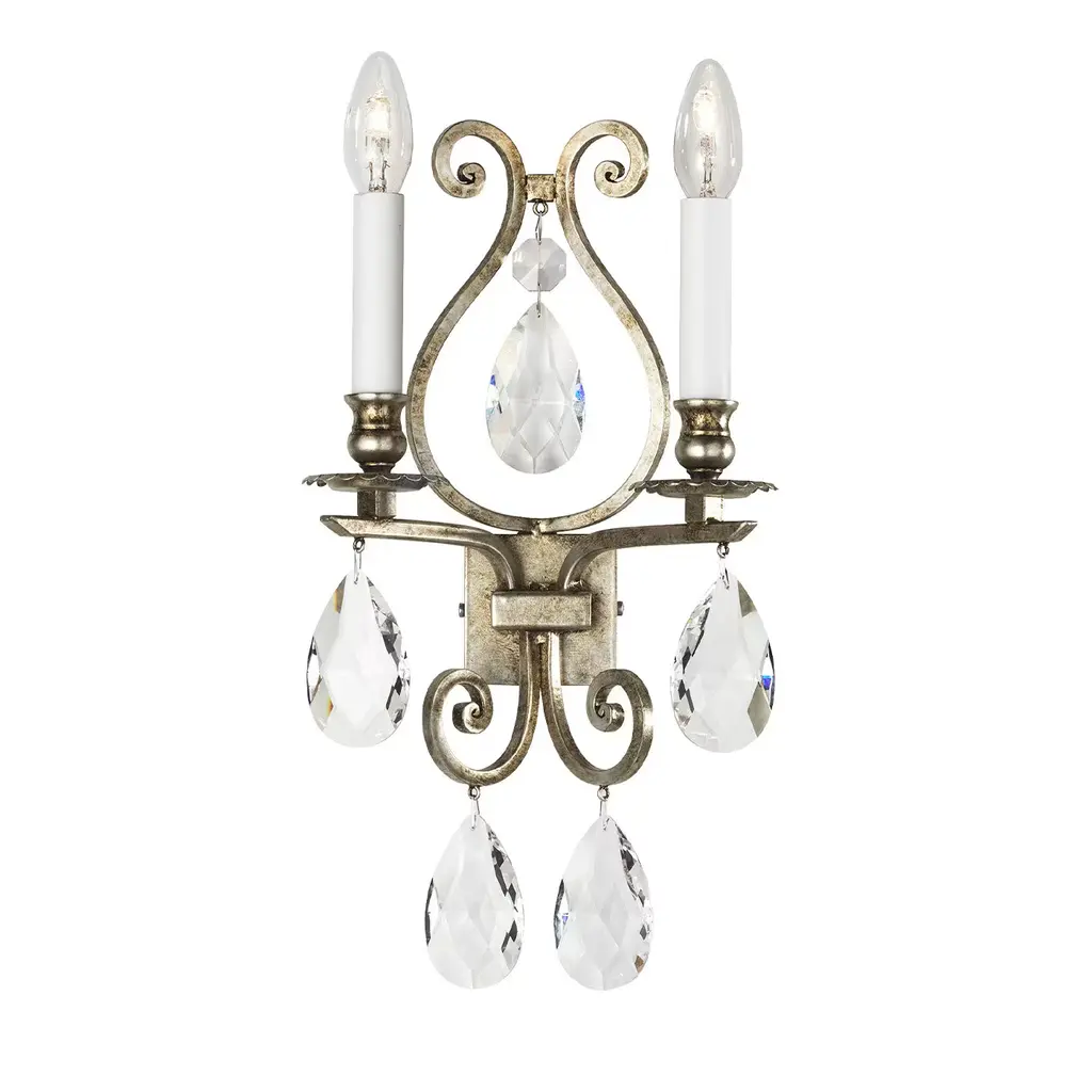 Sconce in warm muted silver leaf finish. Features beveled crystal accents.