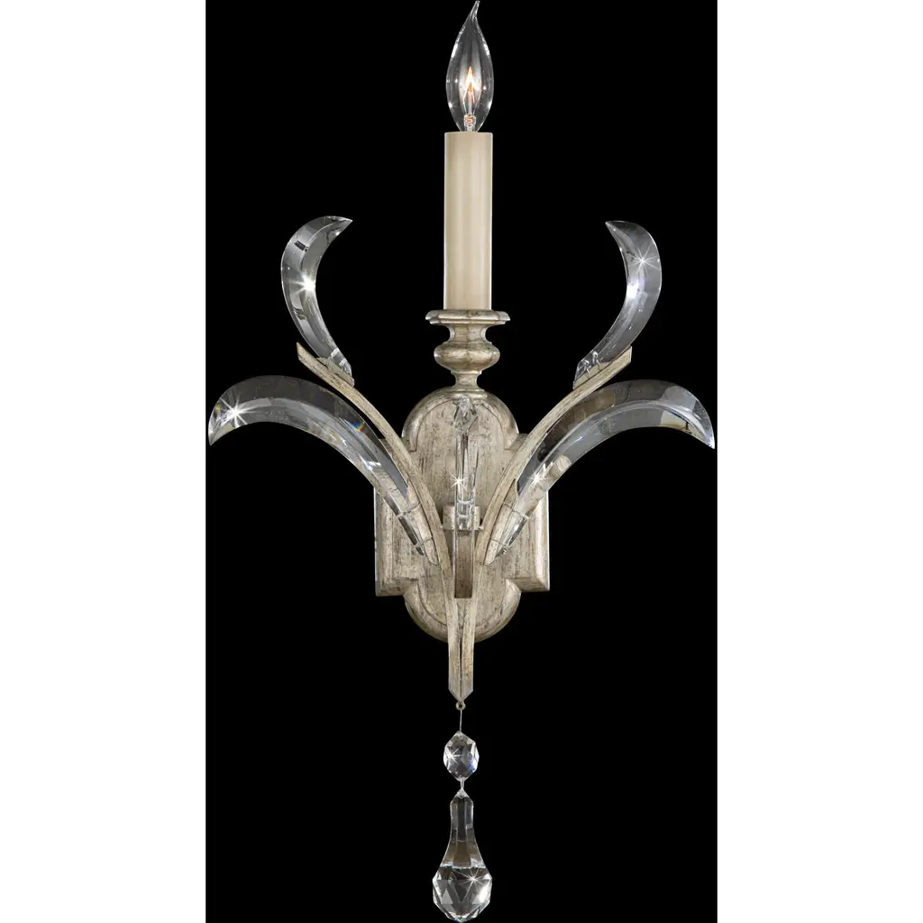 Sconce in a silver leaf finish with matching candlesticks, featuring beveled crystal accents.