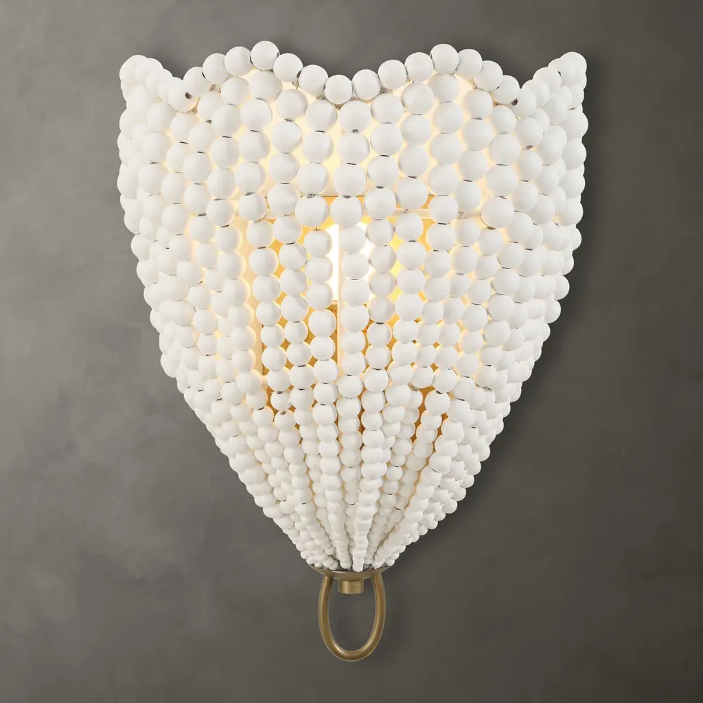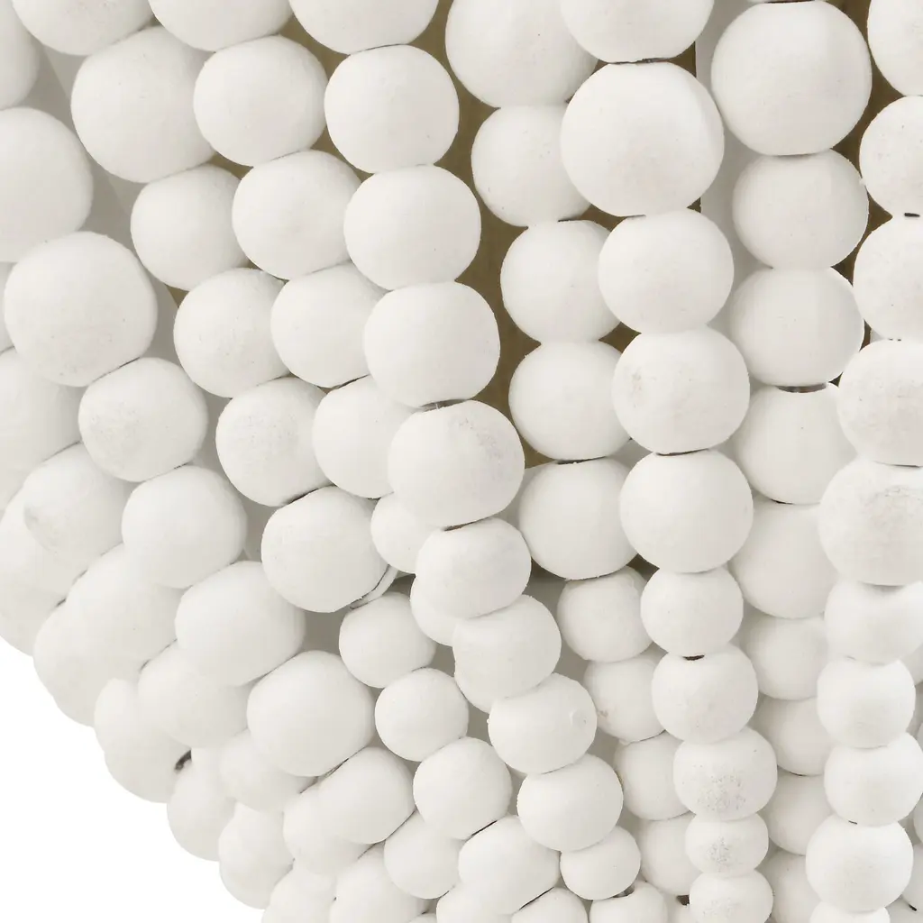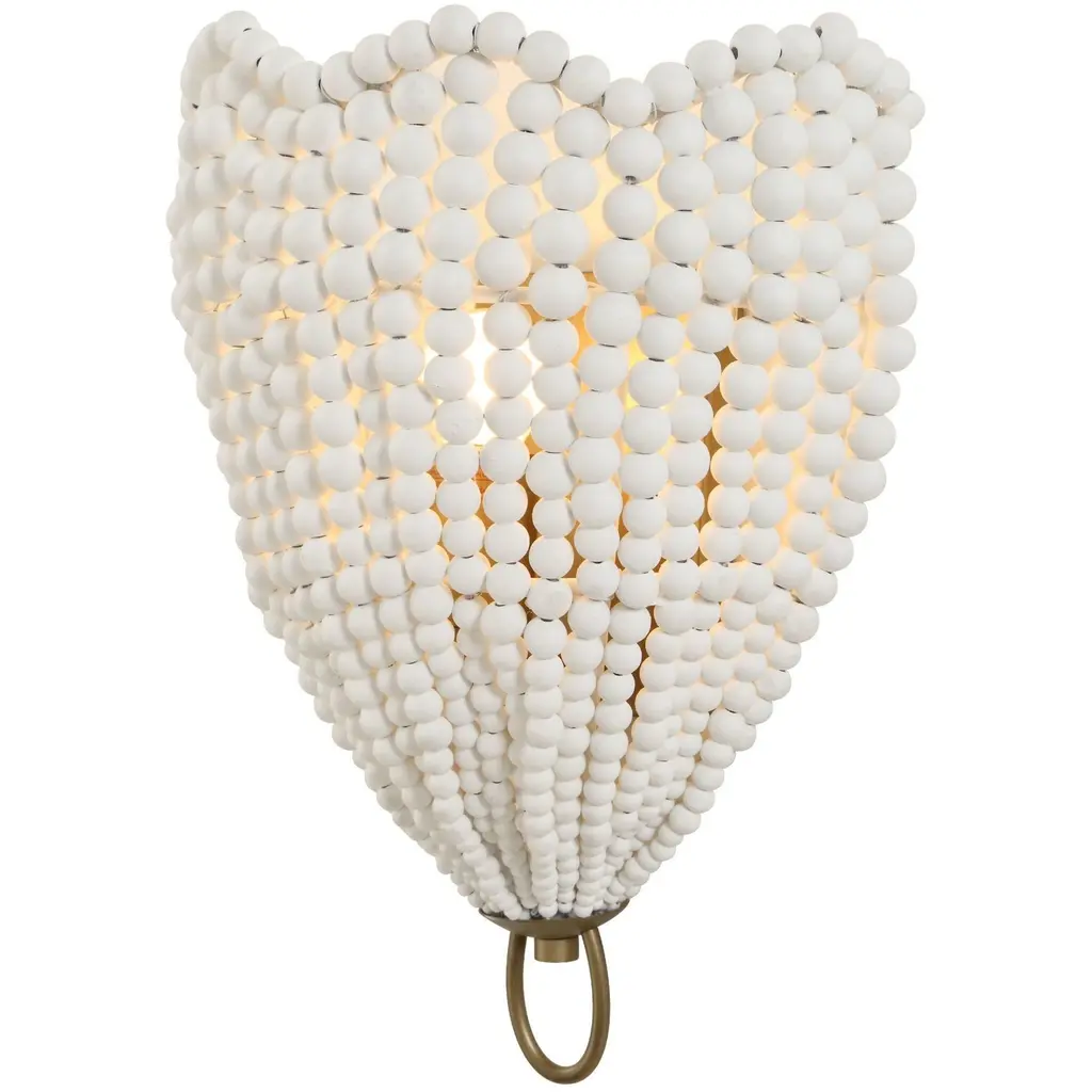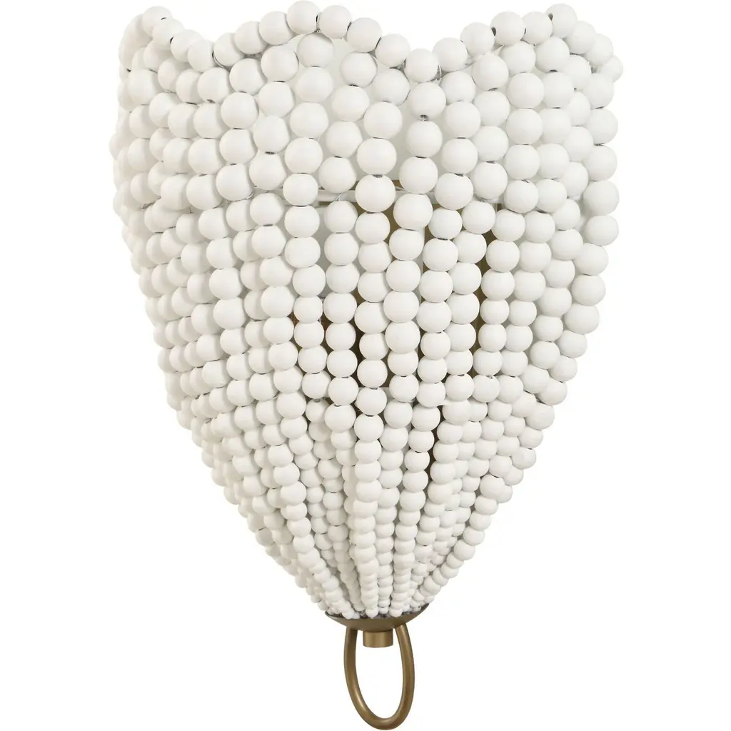 Our Refreshing 1 Lt. Sconce Features A Scalloped Shade Made Up Of A Variety Of 7 Sizes Of Intermingled Matte White Wood Beads Completed With A Brushed Matte Gold Finish Giving An Airy Inviting Feeling To Any Interior. 1-60 Watt Max Edison Socket. Bulb Not Included.