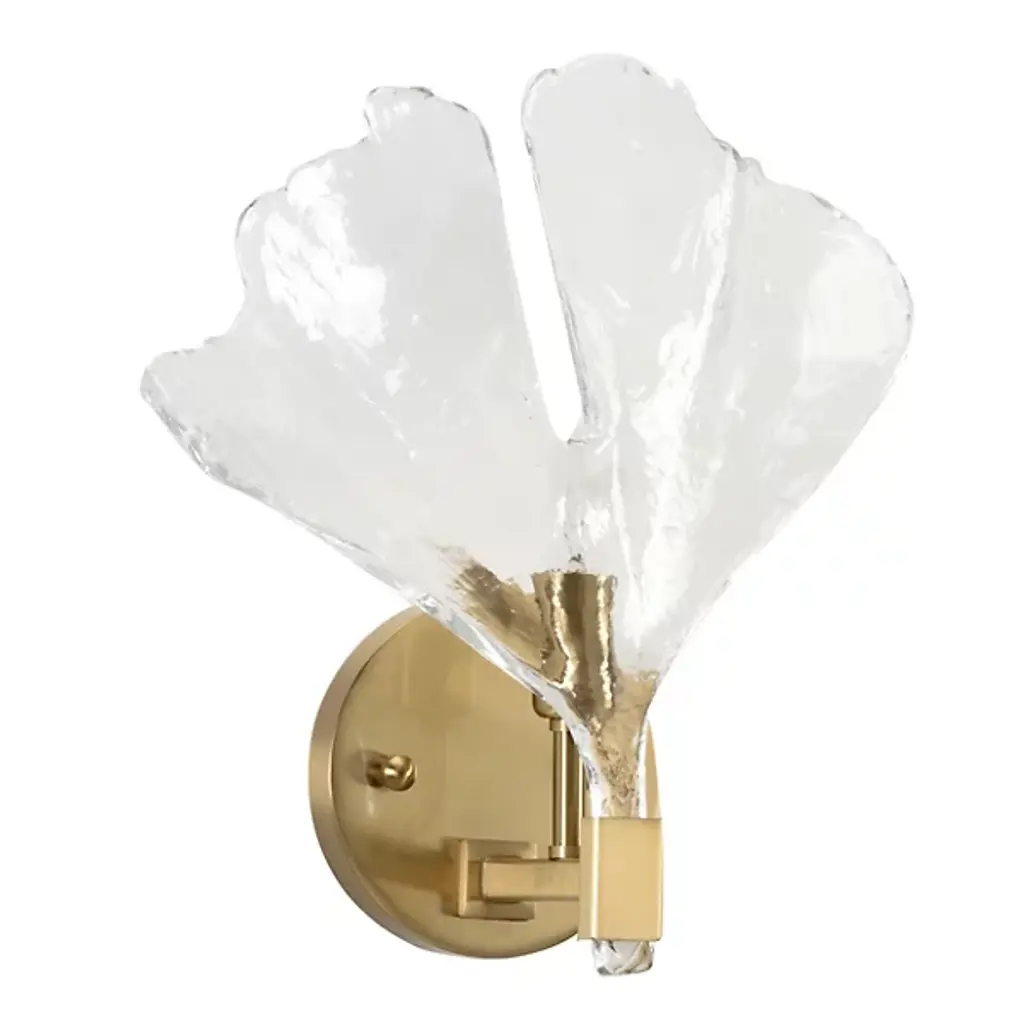 Clear,textured Cast Glass Ginkgo Leaf With An Antique Brass Finished Wall Mount.