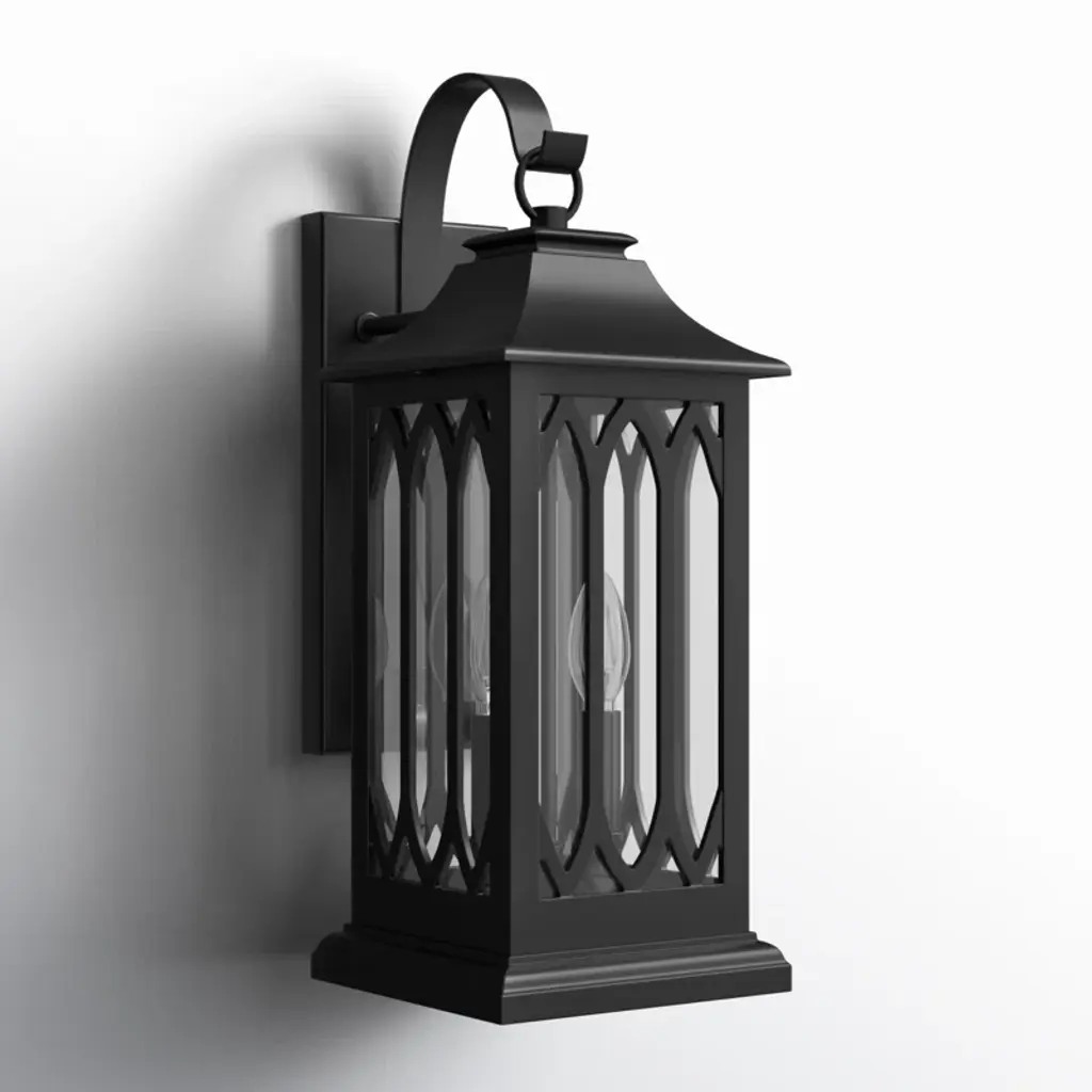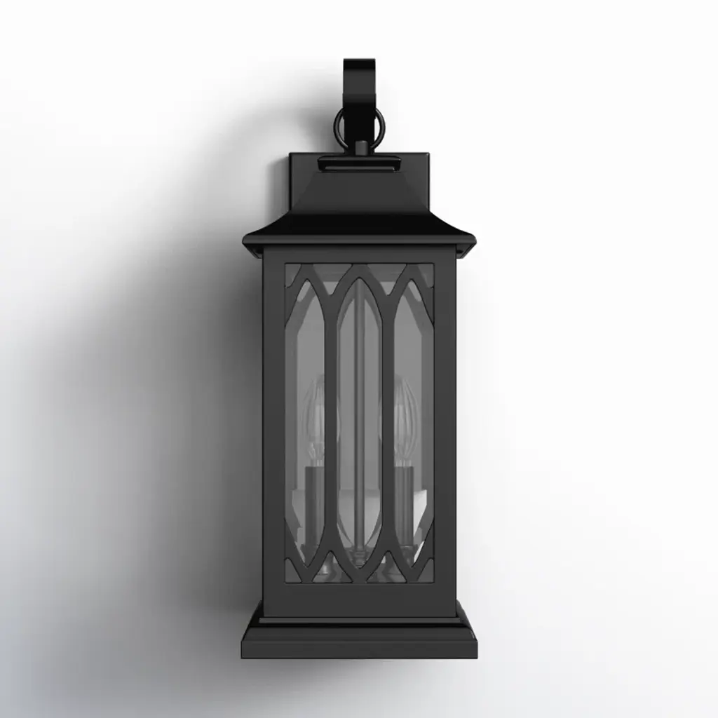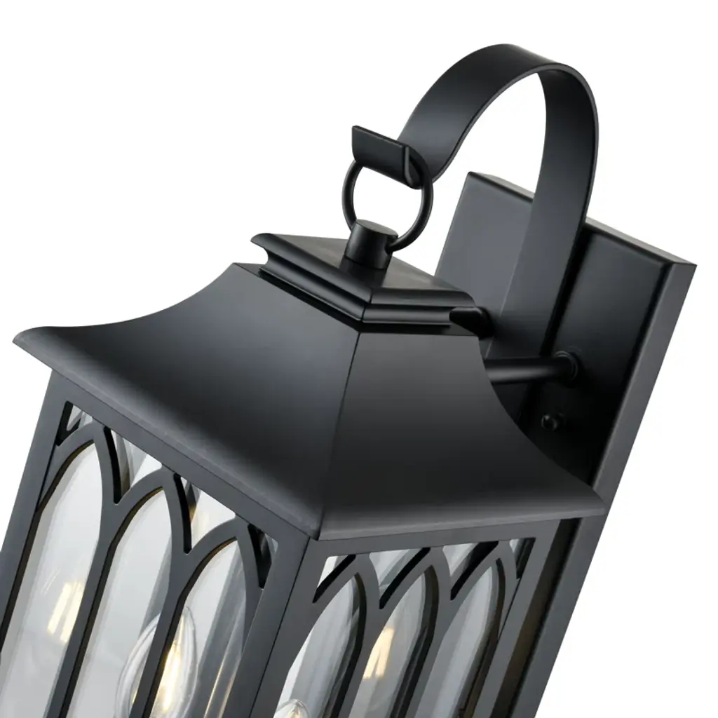 Exquisite metalwork creates wonderful light play for the Edan Family of outdoor lighting. The aluminum housing, finished in powder coated black, is punctuated with a modern spin on Gothic-style arches and the traditional hook-and-arm profile. The fixtures are available as 1-, 2-, and 3-light sconce, 3-light pendant, or 3-light post, and create a dramatic effect across any exterior.