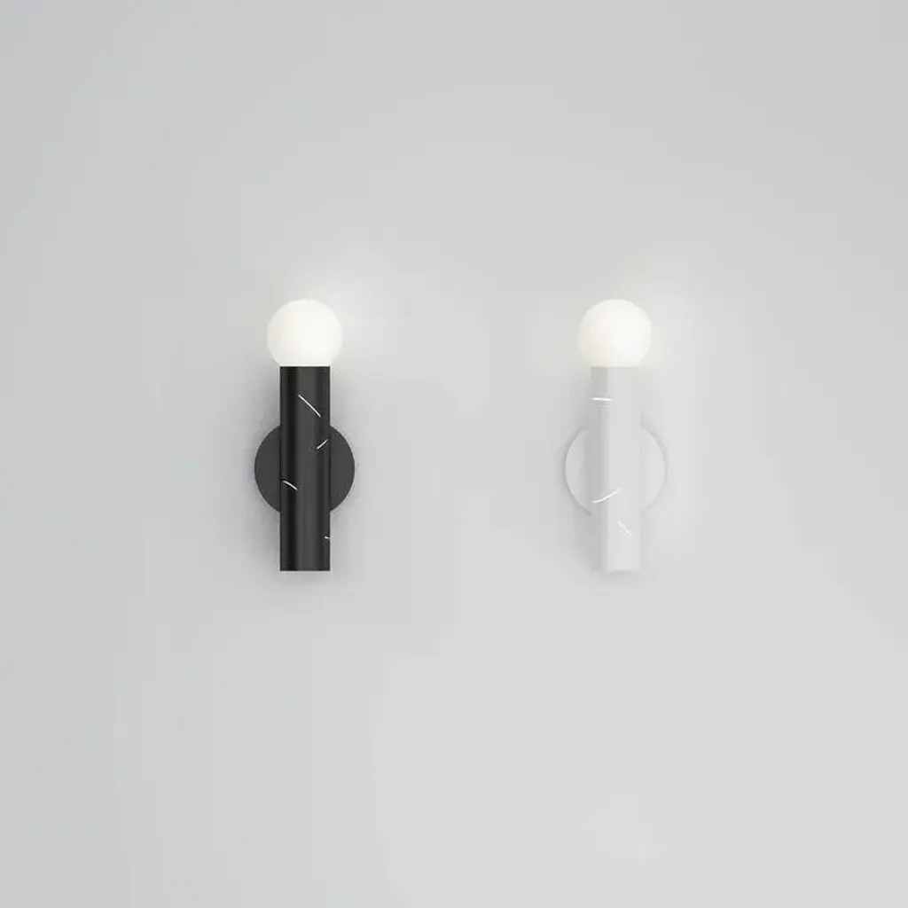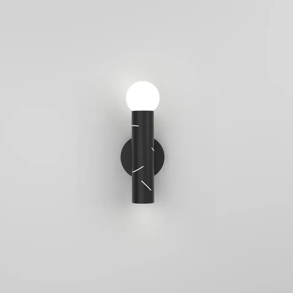Birch wall light by atelier areti dimensions: d 9 x w 12 x h 33 cm. Materials: black powder-coated metal, white glass. up to 250v (europe/uk standard).