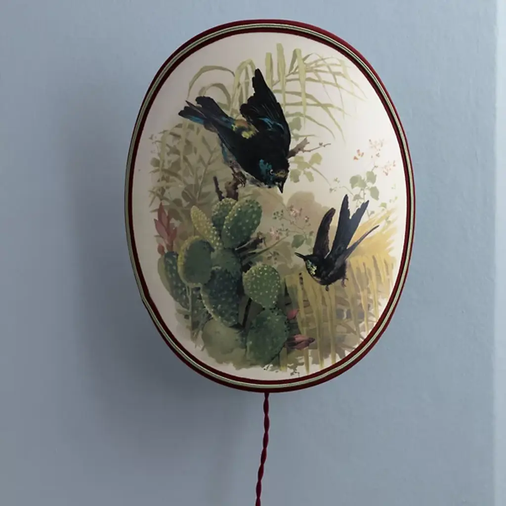 The Birds and Butterflies Wall Sconce from Servomuto is expertly crafted in Italy. Drawing inspiration from vintage illustrations from circa the 1750s via Servomuto's archives, the sconce features intricate depictions of birds and butterflies. Each sconce is handcrafted by skilled Italian artisans who use vegetal paper to create a beautiful and unique finish. With its vintage-inspired design and expert craftsmanship, the Birds & Butterflies Wall Sconce is a beautiful addition to your space.