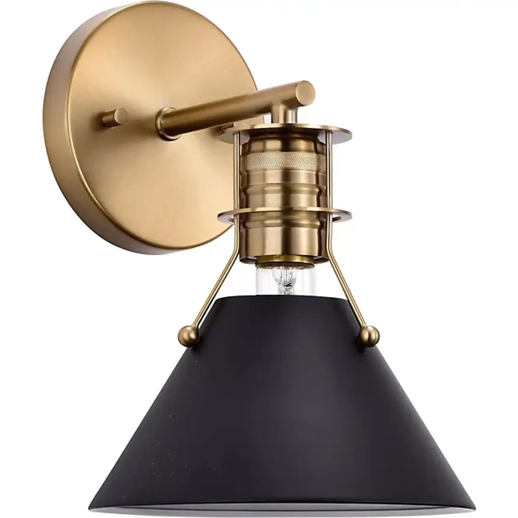 Illuminate your decor style with this one light Bishop bath fixture from Acclaim Lighting. The design features a mixed metals finish in black and brass. Stylish and sophisticated, the design is ideal for bath and vanity areas over sinks or sides of a mirror.