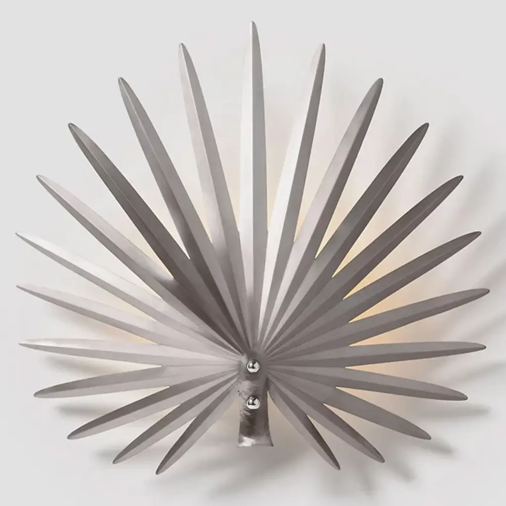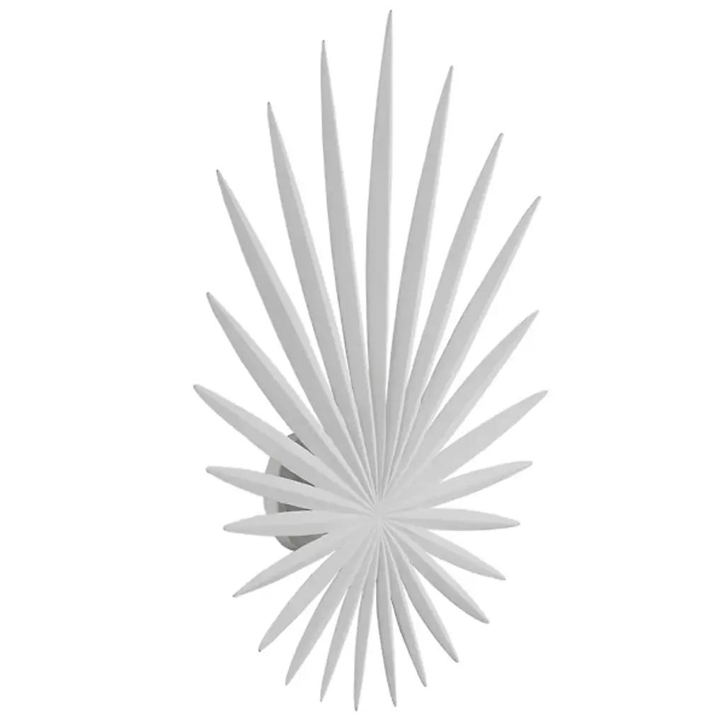 Drawing inspiration from the majestic Bismarkia palm with its remarkably large fronds, the Bismarkia LED Wall Sconce from Currey & Company showcases Marjorie Skouras' love of nature in its design. Reflecting her passion for the Yucatan and the abundant flora and fauna, this steel fixture is finished in crisp gesso white. The spiky leaf sconce features integrated LED technology, illuminating your space with efficiency and style. Marjorie Skouras' dedication to capturing the essence of nature shines through in this captivating and environmentally-friendly creation.