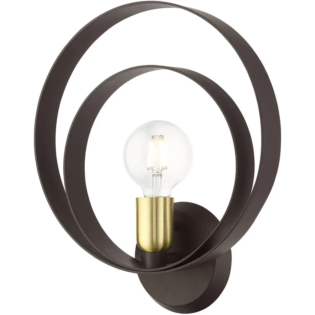 The Bixby Wall Sconce from Alder & Ore is a mid-century modern-inspired piece, highlighted by its clarity and openness in silhouette. The sconce is an easy addition to an entryway, living room, or hallway as it features an ultra-low-profile and compact backplate. The sconce serves as a clear focal point in the home as it circles its light source with a sleek metal band. The lamp holder inside hints at the sconce’s mid-century style with curved contours. With a bare bulb resting on top, light warmly glazes the back wall to enhance the graphic silhouette.