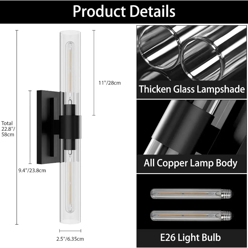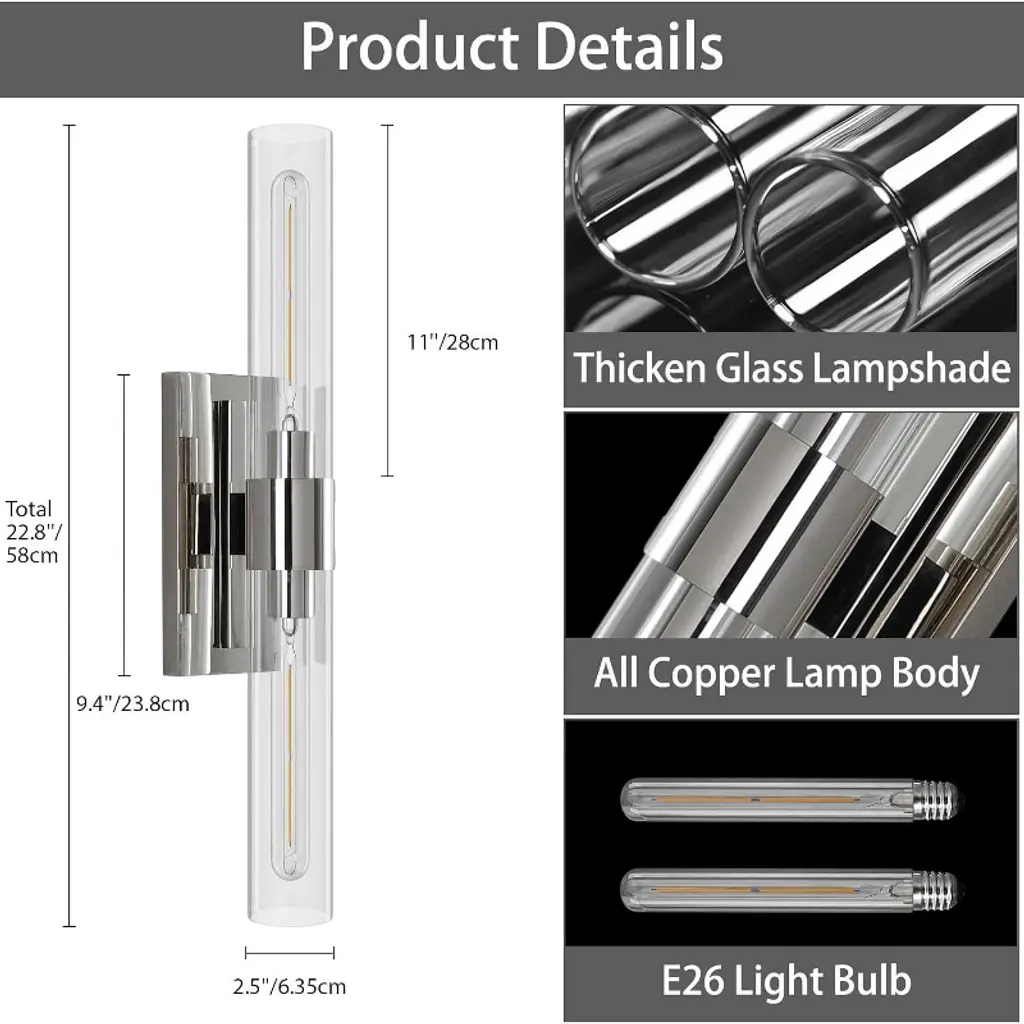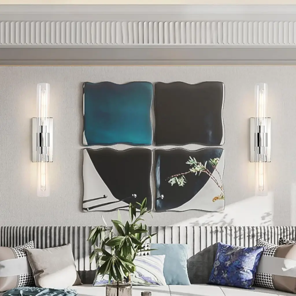Exuding an industrial charm, this wall light offers a visually appealing aesthetic. The sleek design features clear glass cylinders that elegantly extend from a rectangular wall plate. Whether mounted horizontally or vertically, these versatile fixtures allow you to achieve the perfect look for your space. Enhance your trendy bath, hallway, or any other walls in your home with the addition of this stylish and versatile wall light.