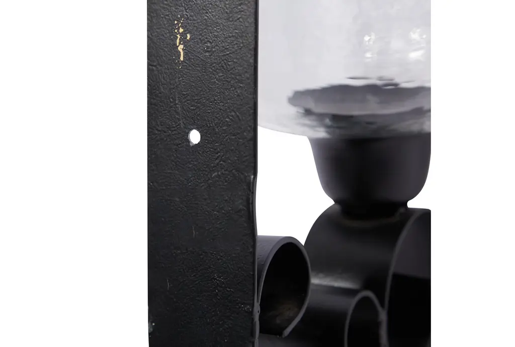 This charming black indoor wall sconce is a great addition for entryways, living rooms, hallways, and room doors. Can hold one pillar candle. This item ships in 1 carton. Due to the handmade nature of this item, no two will be alike, there will be slight differences in shape, size, and color. Can be hung vertically using the hole on the back; nails and screws not included. Suitable for indoor use only. This item ships fully assembled in one piece. Made in India. This is a single black colored candle sconce. Traditional style.