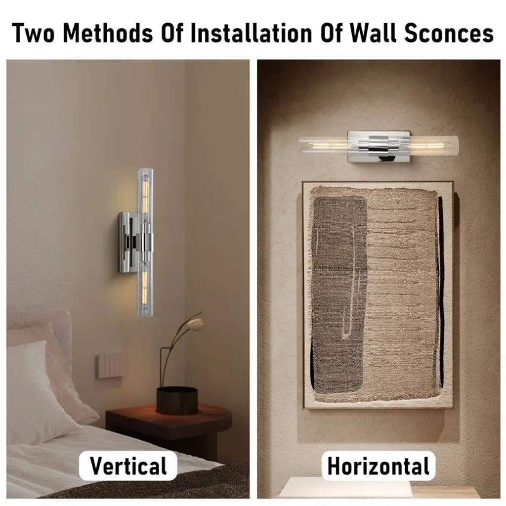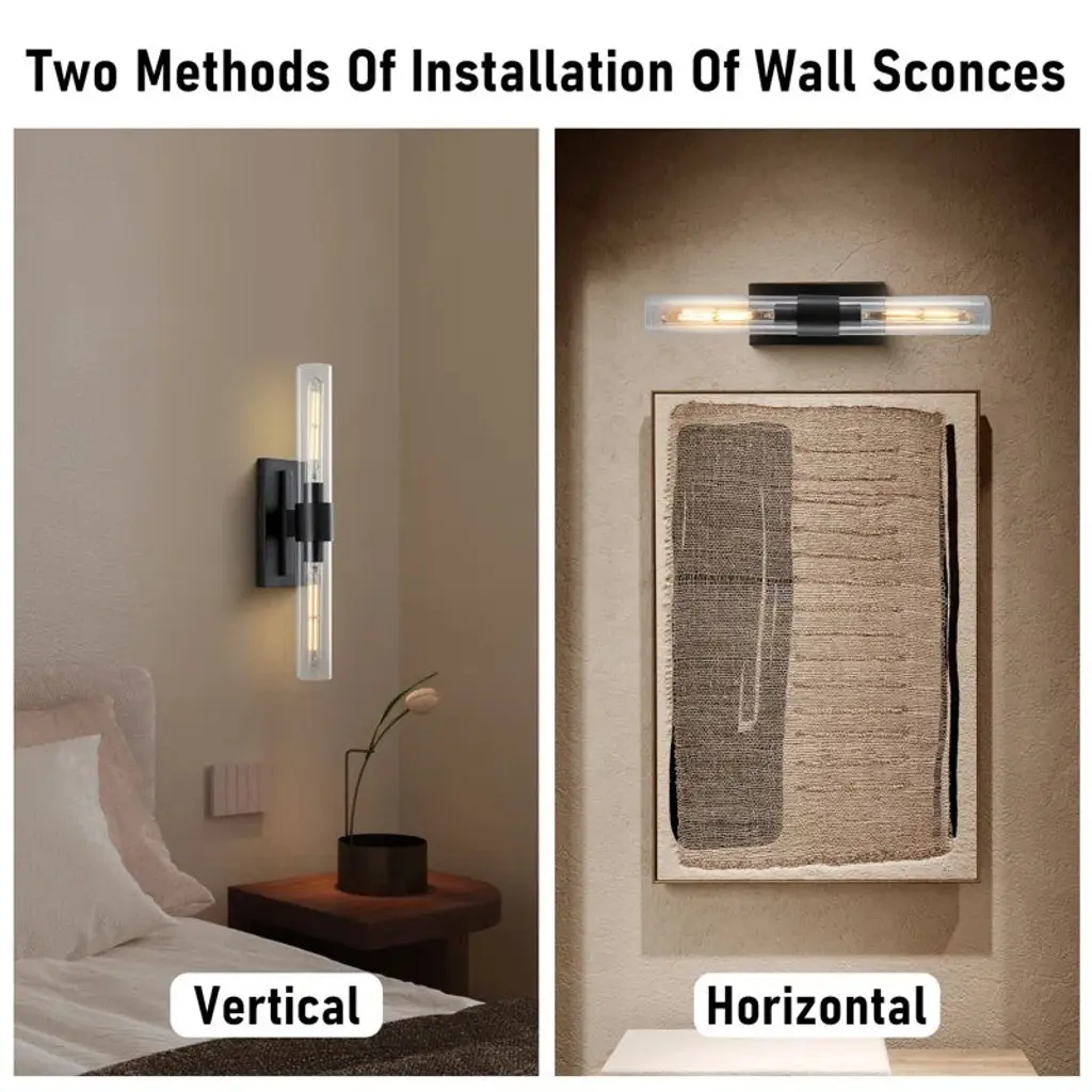 Infused with refined industrial charm, this wall sconce exudes a captivating visual presence. Its sleek, minimalist design features transparent glass cylinders extending gracefully from a structured rectangular backplate, blending modern sophistication with timeless appeal. Designed for versatility, the fixture can be mounted either vertically or horizontally—allowing you to tailor the lighting to your desired mood and space.Perfect for elevating the atmosphere in bathrooms, hallways, or accent walls, this chic wall light brings both function and elegance to any interior setting.