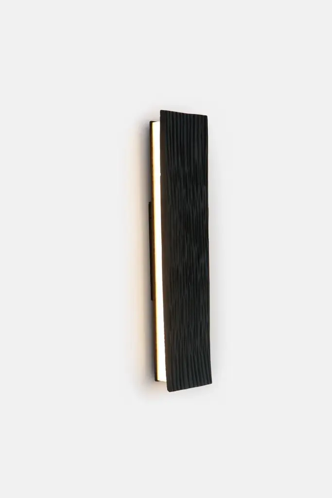 Black Vertical Sconce by HatsuDimensions: D 5.8 x W 11 x H 44.5 cmMaterials: Ceramic, metal.Available in black, terracotta, blue, or clay colors. Please contact us.All our lamps can be wired according to each country. If sold to the USA it will be wired for the USA for instance.Introducing our Vertical Sconce, a sophisticated lighting solution that marries modern design with timeless elegance. Crafted with meticulous attention to detail, this sleek fixture is designed to enhance any space with its understated charm and functionality. Its clean lines and streamlined silhouette make it a versatile choice for a variety of interior styles, from minimalist and modern to classic and traditional.Hatsu is a design studio based in Mumbai that creates modern lighting that are unique and immediately recognizable. We started with an idea to make good design available to people and design products that are eclectic, romantic and minimal. We want to be progressive with our designs in such a way that they influence the users lives. There are three responses to a piece of design - yes, no and wow! Our aim is wow.