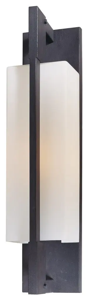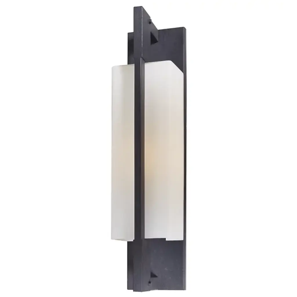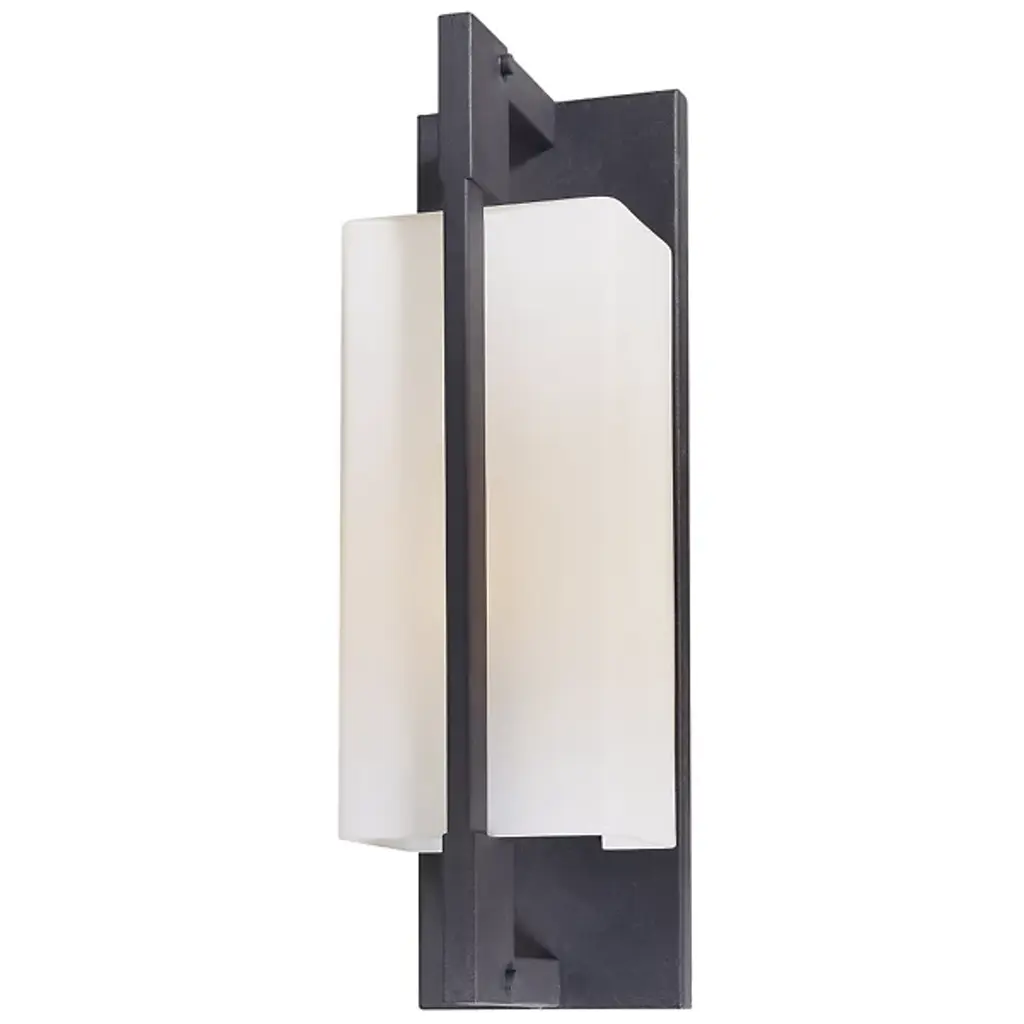The hand-worked wrought iron frame of the Troy Lighting Blade Vertical Wall Sconce is a handsome contrast to White Matte Opal glass, the brackets on the frame a strong balance to the delicate shade. Use this soft contemporary sconce both indoors and outdoors for a simple yet attractive look.