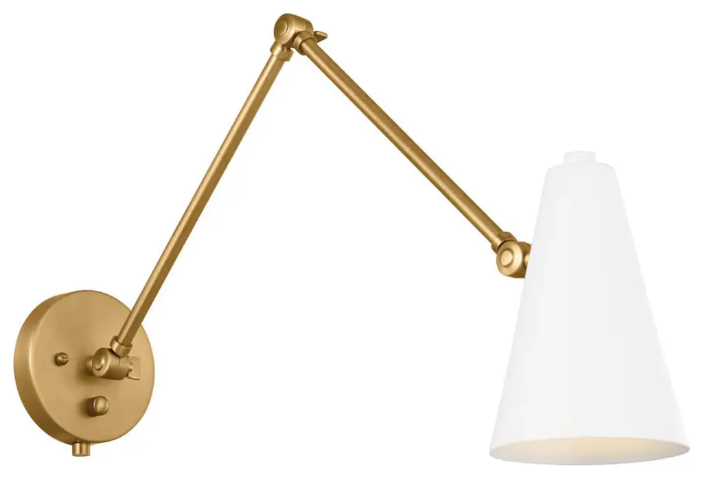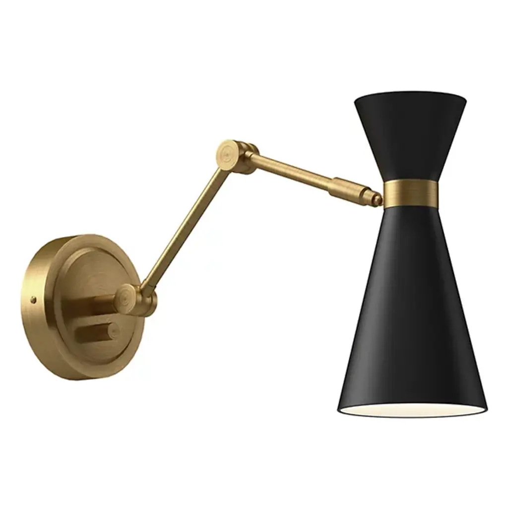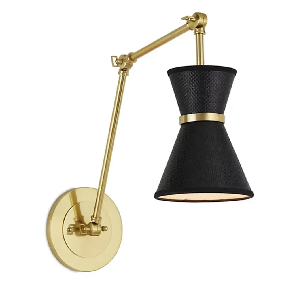 The Blake Adjustable Wall Sconce by Alora Mood is a handsome addition to spaces that takes inspiration from the tailored form of a bowtie. Dressed up with a bold and beautiful mix of finishes, this lamp is anchored by a round wallplate and features an adjustable arm that allows you to bring a layer of illumination just where it is needed. Perfect over a set of bedside tables or set near a reading nook, the flared shade of this design is wrapped with a sleek band, defining its shape as it casts an even wash of light below it.