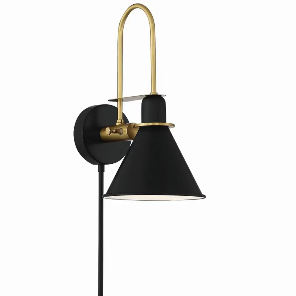 The Blake Wall Sconce by Alora Mood has a handsome, tailored look that was inspired by the form of a bowtie. With a formal feel, this design is anchored by a round backplate and supported by a simple arm that reaches outward. A smooth band wraps around the waist of a tapered shade that flares outward in either direction for a bold silhouette as it focuses a layer of illumination down onto its surroundings.