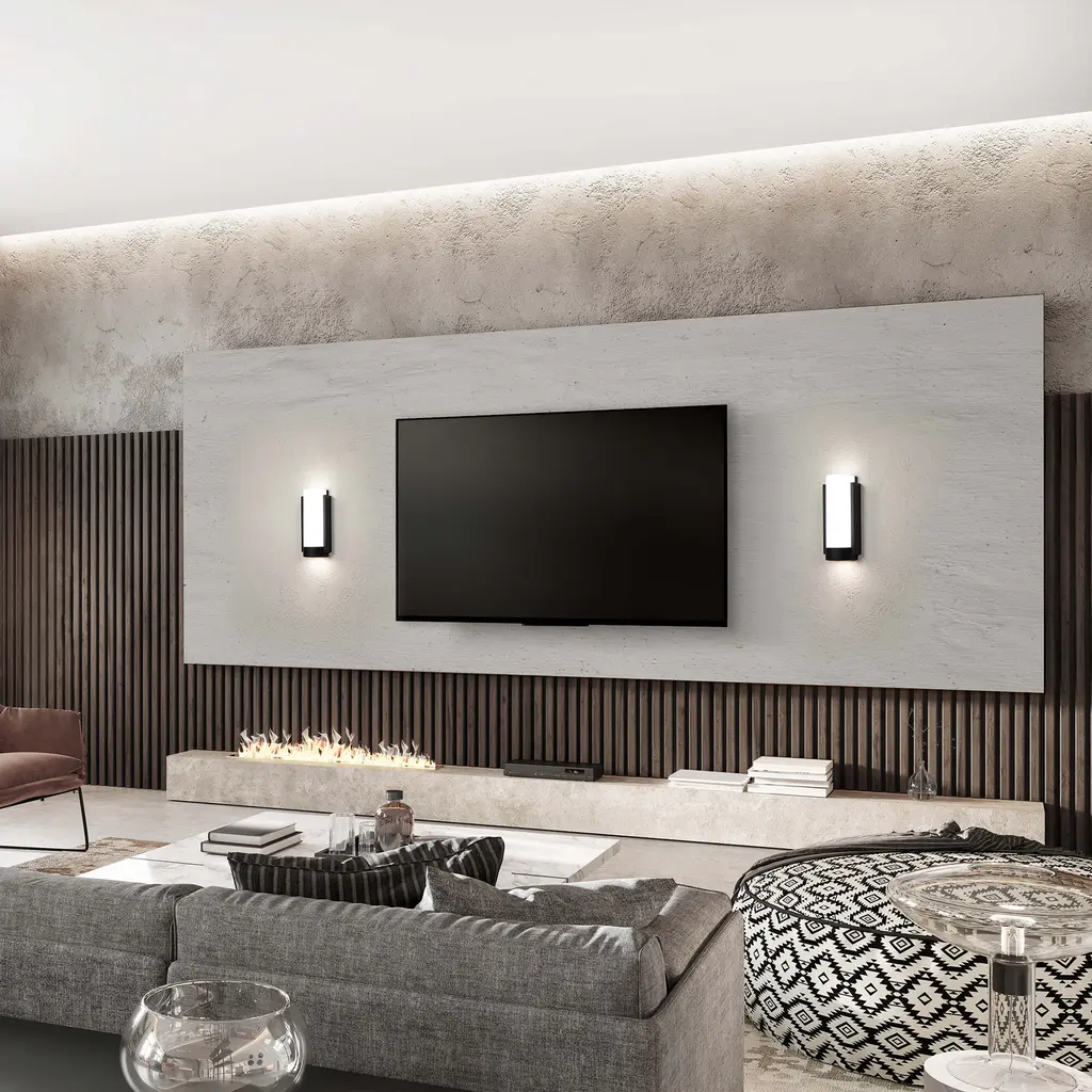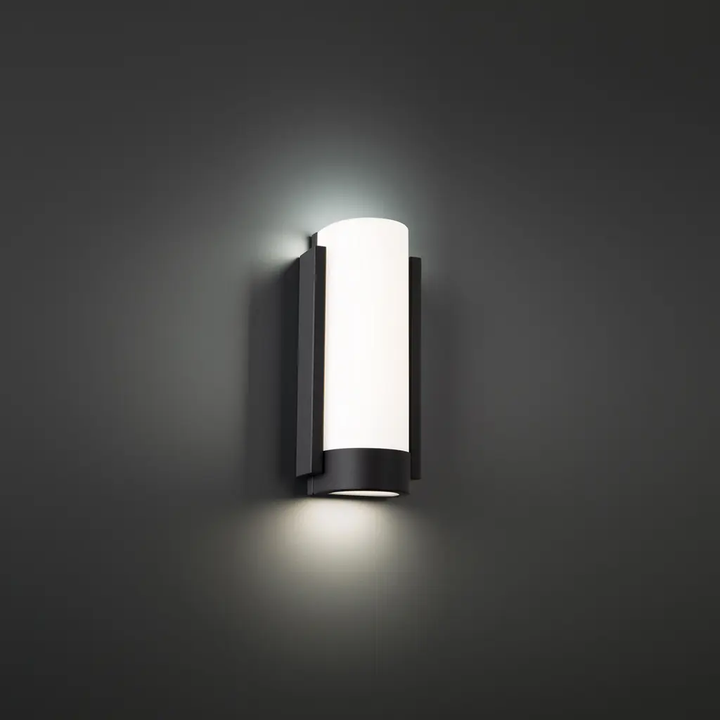 Invite Blake into your home. A soulful minimalism shaped with contours and beautiful ambient light. This ADA Compliant LED sconce is available in a black finish and projects downward light and beautiful ambient illumination from an etched opal glass diffuser. Ideal for providing ambient illumination on walls in hallways, dining areas, bedrooms and a multitude of spaces in residential, hospitality and commercial settings. This LED luminaire is powered by driverless ACLEDs that feature a high 90 color rendering index, and operates on a 120 volt system. Order with your desired color temperature and use the built-in color temperature adjustability switch to adjust from warm white 2700K, to soft white 3000K, or bright white 3500K. State of the art LEDs have a 50,000 hour rated life. This LED luminaire is ETL and cETL listed for damp locations and is California Title 24 rated for the highest energy efficient requirements offered today. Dims down beautifully with an electronic low voltage or TRIAC dimming system. Versatile and stately, Blake makes the perfect indoor wall sconce.