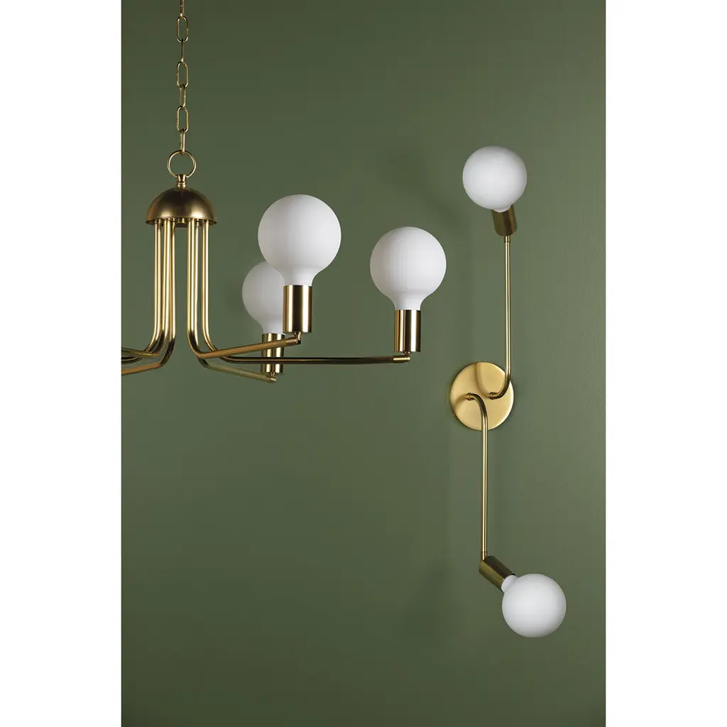 Blakely proves there is beauty in imperfection, flaunting a silhouette that stuns. Bold yet understated, this 2-light wall sconce and 6-light chandelier feature opposing bulbs extending from an old bronze, polished nickel, or aged brass frame.