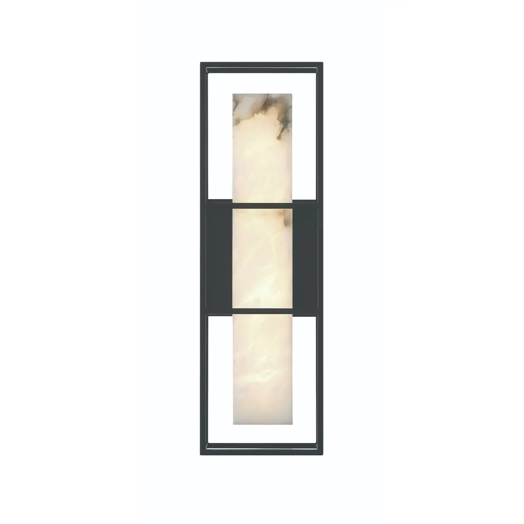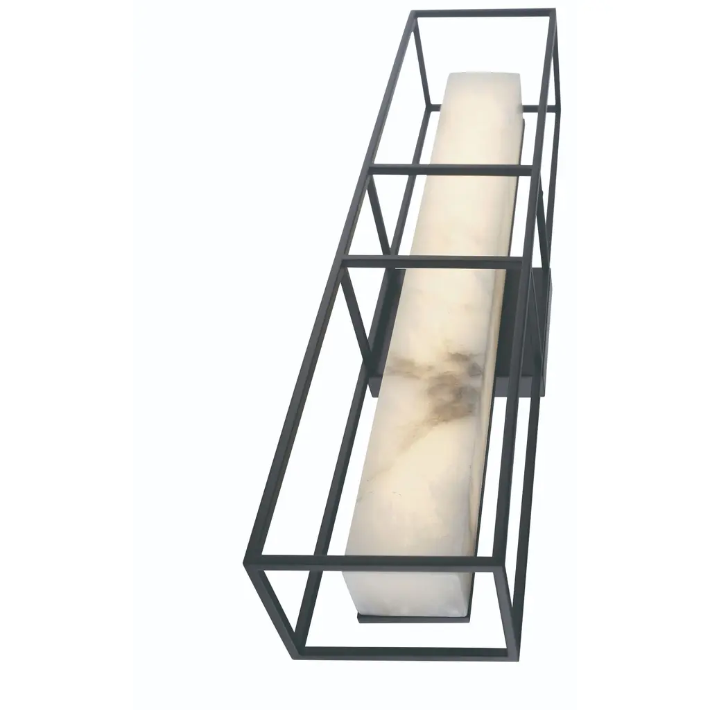 Organic and industrial have been combined. The softness of one piece, hand carved alabaster surrounded by a metal frame to represent the yin and yang in exterior design. Natural alabaster may show variations in color and texture.