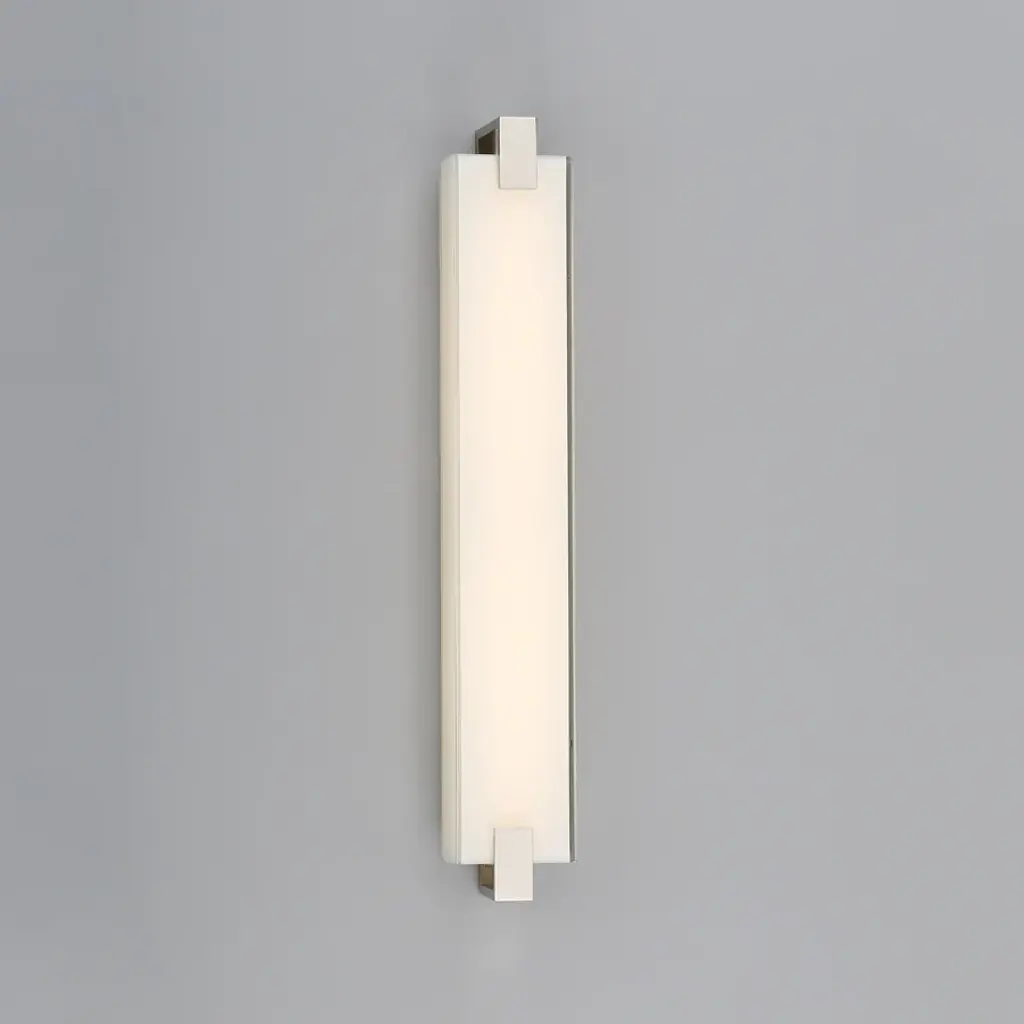 Two polished nickel clips gently restrain the tempered, mitered glass diffuser at its edges in an elegant meditation on balance, while highly efficient LED modules ensure an outstanding illumination that will endure the test of time. Features