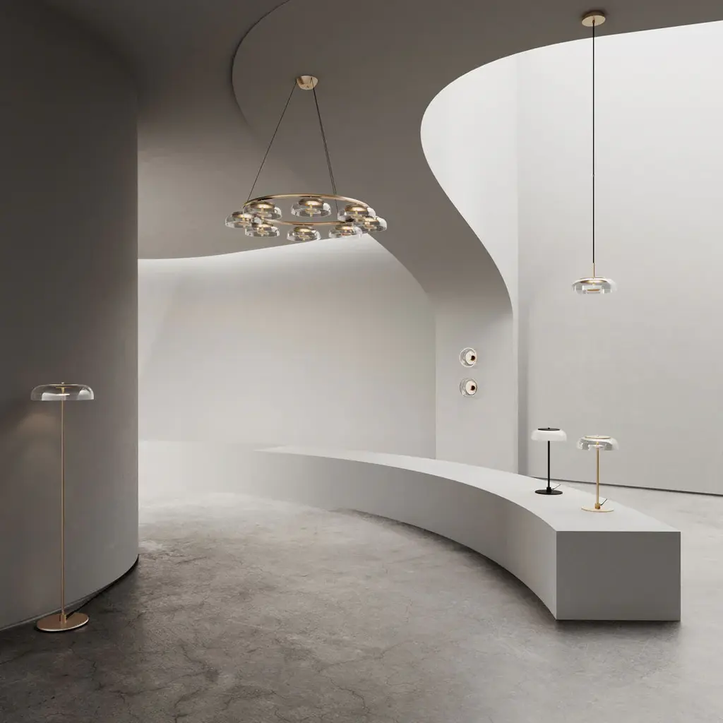 Blossi Wall is a wall and ceiling lamp with classic appeal and modern LED technology. A special developed LED disc reflects the light in the mouth-blown glass shade, spreading a soft and indirect light.