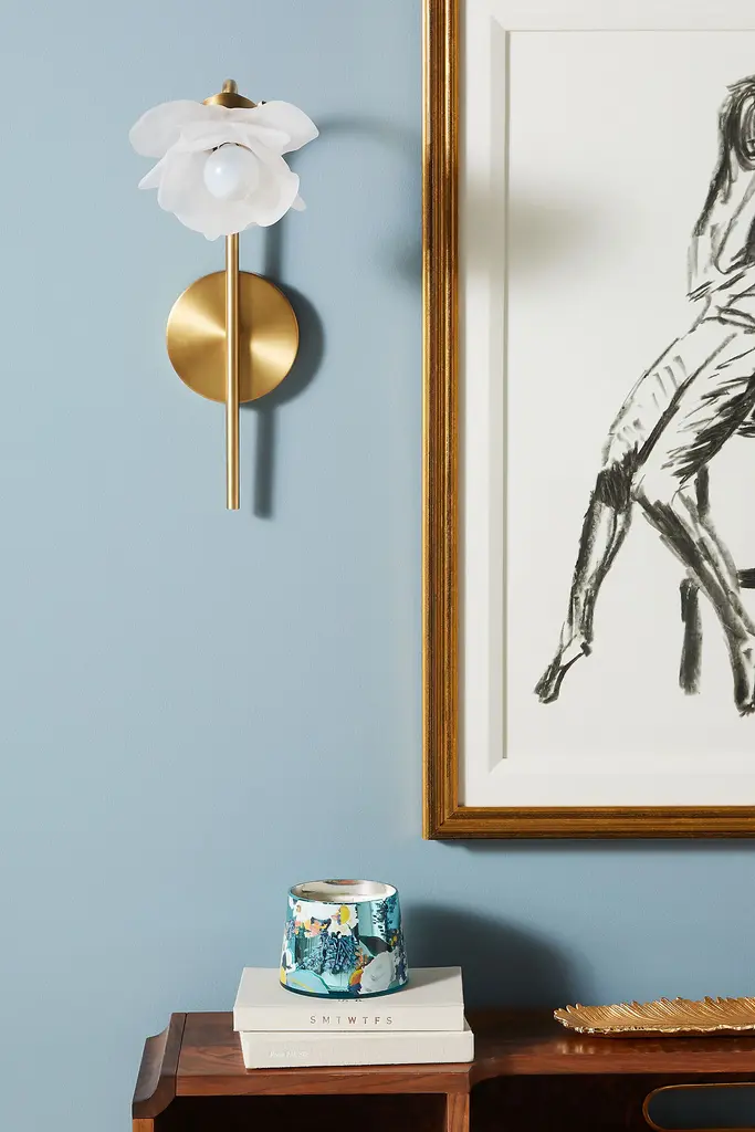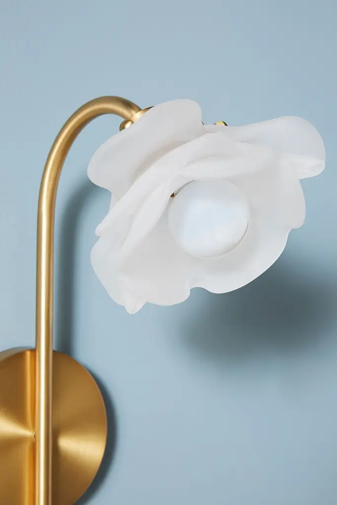 This beautiful sconce offers a unique way to bring florals into your decor. Its flower features a bulb within its petals that illuminates its frosted glass, creating a fixture that is both elegant and delightful. This item is UL listed, meaning it has been tested and approved to meet the government-regulated safety standards for the USA. Use with electrical outlets 110-120v or lower, as anything higher can cause fire or injury. If you're purchasing this item for use outside of the United States, employ the adapter and voltage converter suited for your country.**This item is UL listed, meaning it has been tested and approved to meet the government-regulated safety standards for the USA. Use with electrical outlets 110-120v or lower, as anything higher can cause fire or injury. If you're purchasing this item for use outside of the United States, employ the adapter and voltage converter suited for your country.