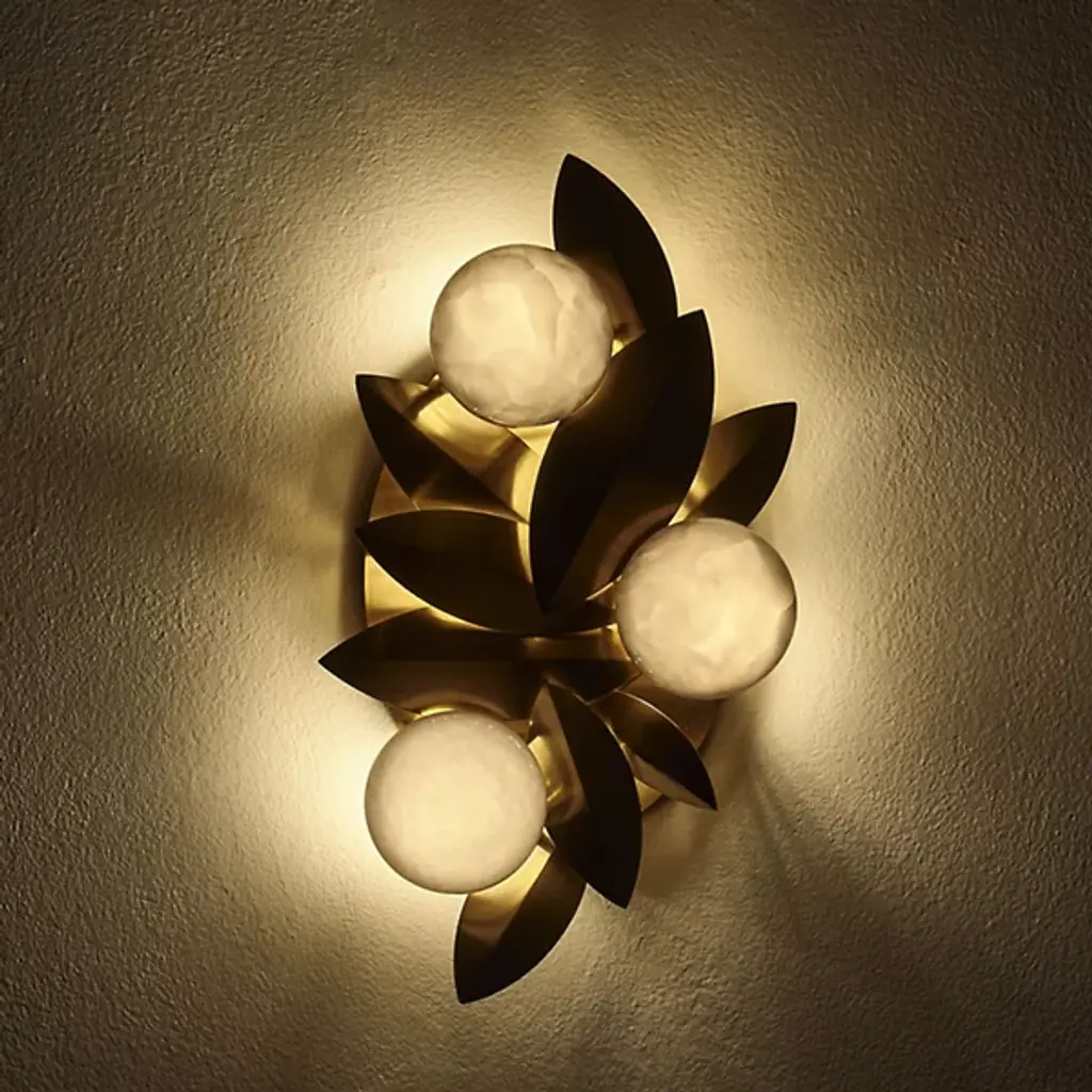 The Blush Wall Sconce from Kalco Lighting features a refined design reminiscent of a brooch, blending contemporary style with natural materials. Crafted from iron and pink jade, it draws inspiration from berries nestled among leaves, creating a delicate yet striking aesthetic. This fixture enhances any space with its warm, sophisticated glow. Its elegant form and carefully selected materials make it a versatile addition to modern interiors, offering both artistic appeal and functional illumination.