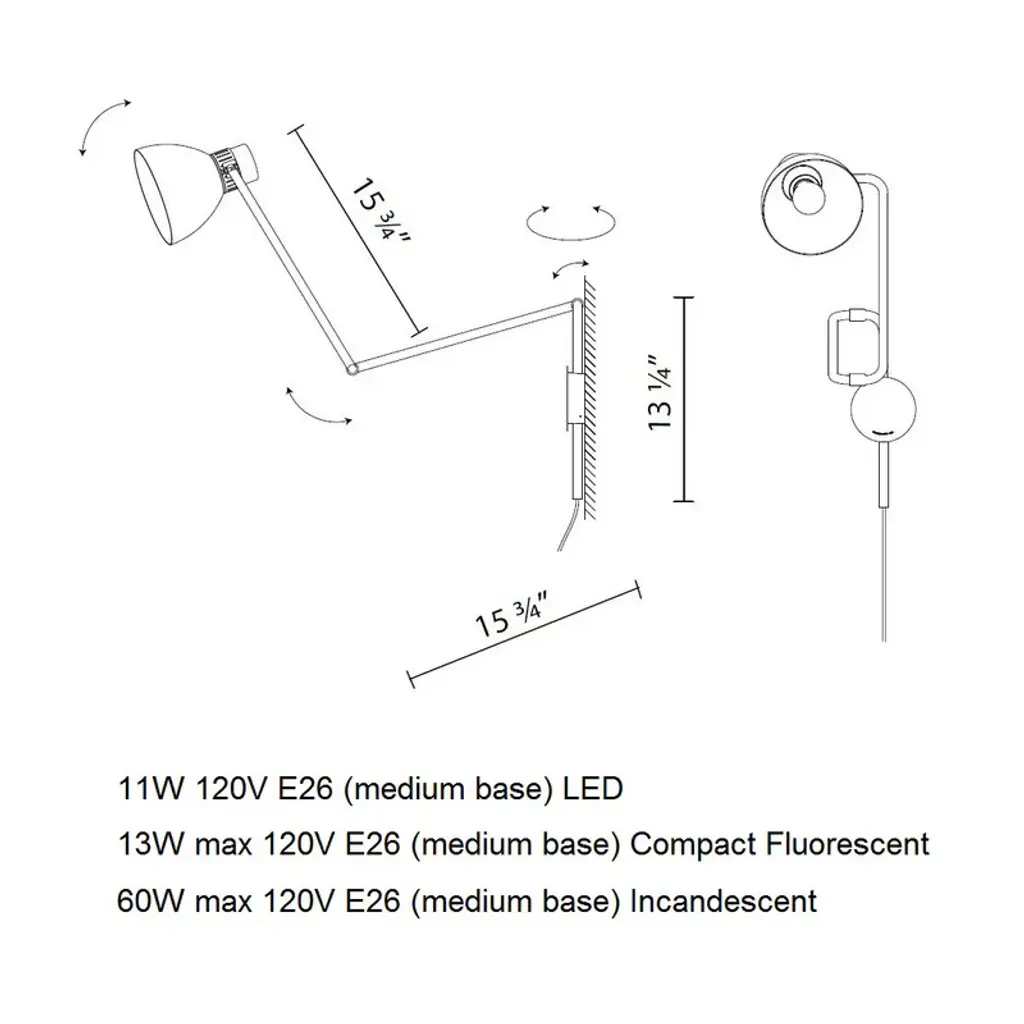 Articulated wall lamp designed in the late 70s in the style of the English school. The simplicity of its forms is reflected in the friction swivel joints and aluminum shade. Features