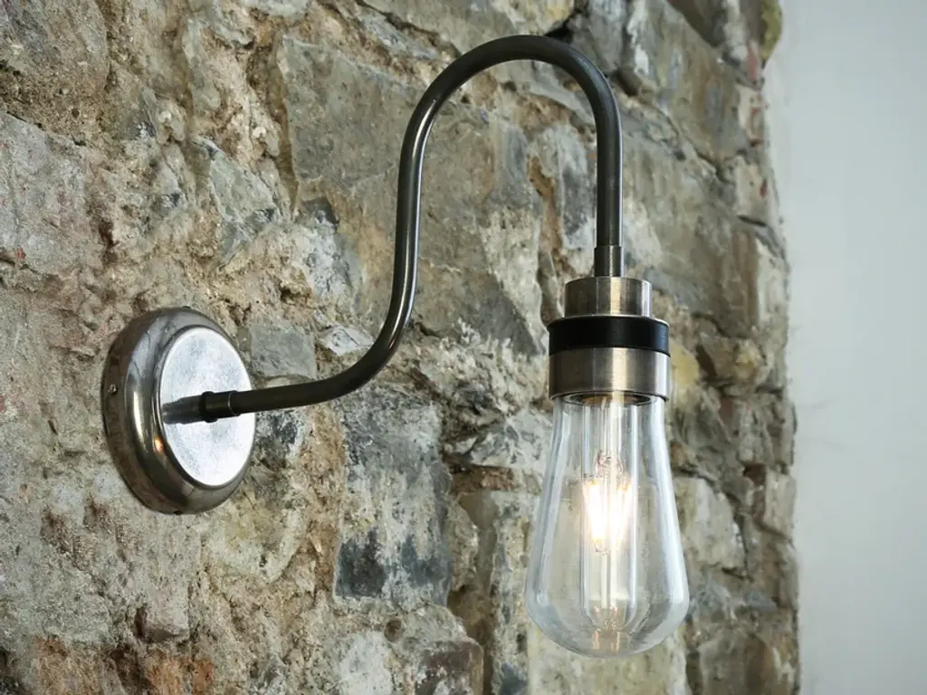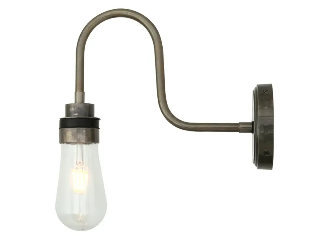 Bo swan neck outdoor wall light Material Brass | Steel | GlassProjection 31cm | 12.25”Weight 0.770kgMax Wattage 6.5w LEDVoltage 220/240vLampholder E27 | Plastic | ES | Edison ScrewIP Rating IP54Glass Code GLWP01Protection Class Class II