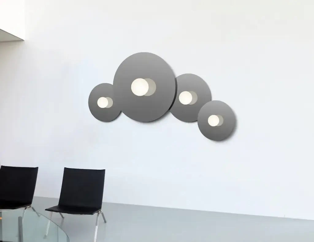 Bola Disc is a uniquely expressive LED wall light featuring a distinctive range of chromated disc reflectors that give the illusion of weightlessness by mirroring its surroundings. Available in 4 distinct sizes 12”(30cm), 18”(46cm), 22”(56cm), 32”(81cm), Bola Disc pairs an elegant globe diffusor made of opaline glass with exquisitely polished stainless steel or aluminum discs in chrome, brass, rose gold, gunmetal and lacquered white or matte black to appease the most discerning tastes. Dependent on size, Bola provides up to 1625 lumens of warm ambient light and is fully dimmable, providing unparalleled illumination.FeaturesFully DimmableShade Options: 12”(30cm), 18”(46cm), 22”(56cm), 32”(81cm) Discs.1" Add-on Standoff allows for overlapping disc groupings.SpecificationsVoltage: 120V-277V 50/60HzPower Consumption: 6W (12”, 18”), 12W (22”), 20W (32”)Color Temperature: 2700K-1800K (Dim-to-Warm)Note: 3000K and 2700K CCT Models Available Upon RequestLuminosity: 290 Lumens (12”/18”), 800 Lumens (22”),1625 Lumens (32”)Luminaire Efficacy: 65 Lumens/Watt (average)Color Rendition Index: 95 CRI50K hour lifespanCERTIFICATIONS: ETL, CE