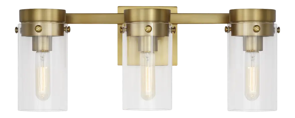 INNOVATIONS 428-3W-BB-G428-12CL Bolivar 3 20.5 inch Bath Vanity Light Brushed Brass. Style: Industrial, Restoration, Transitional. Collection Name: Downtown Urban. Metal Finish(Body): Brushed Brass. Material: Steel, Cast Brass, Glass. Dimension(in): 14.5(H) x 20.5(W) x 6(Ext). Bulb: (3)5W LED(Included). Voltage: 120. Dimmable: Yes. Color Temperature (Kelvin): 2700. Color Rendering Index (CRI): 90. Lumens: 500. Life Expectancy (Hours): 15000. Glass Shade Description: Clear Bolivar. Glass Type: Clear. Shade Shape: Cylinder. Glass or Metal Shade Color: Clear. Shade Material: Glass. Shade Dimension(in): 3.5(W) x 12(H). ADA Compliant: No. California Proposition 65 Warning Required: Yes. UL/ETL Certification Type: Damp Location.