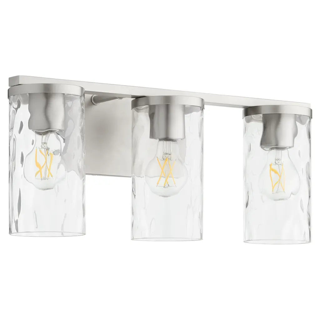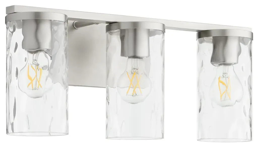 INNOVATIONS 428-3W-SN-G428-12SDY Bolivar 3 20.5 inch Bath Vanity Light Satin Nickel. Style: Industrial, Restoration, Transitional. Collection Name: Downtown Urban. Metal Finish(Body): Satin Nickel. Material: Steel, Cast Brass, Glass. Dimension(in): 14.5(H) x 20.5(W) x 6(Ext). Bulb: (3)5W LED(Included). Voltage: 120. Dimmable: Yes. Color Temperature (Kelvin): 2700. Color Rendering Index (CRI): 90. Lumens: 500. Life Expectancy (Hours): 15000. Glass Shade Description: Seedy Bolivar. Glass Type: Seedy. Shade Shape: Cylinder. Glass or Metal Shade Color: Seedy. Shade Material: Glass. Shade Dimension(in): 3.5(W) x 12(H). ADA Compliant: No. California Proposition 65 Warning Required: Yes. UL/ETL Certification Type: Damp Location.