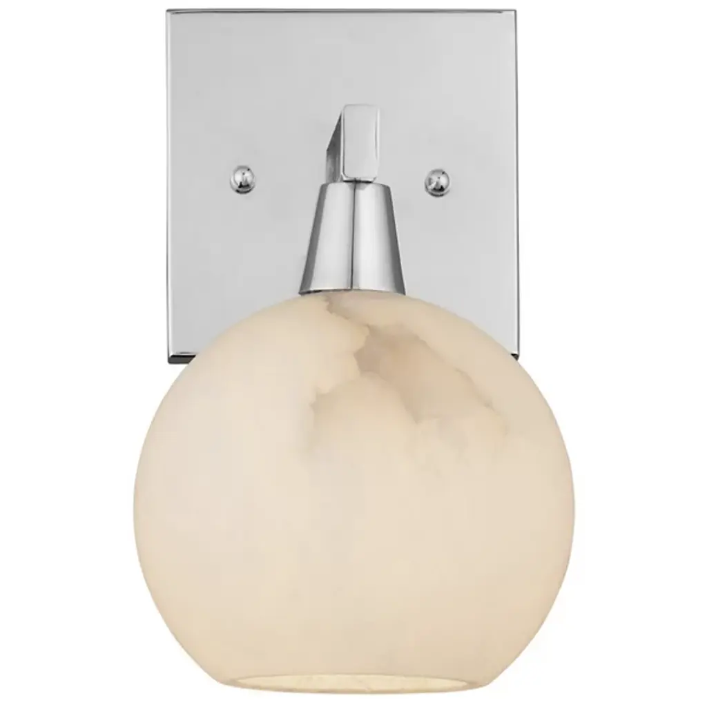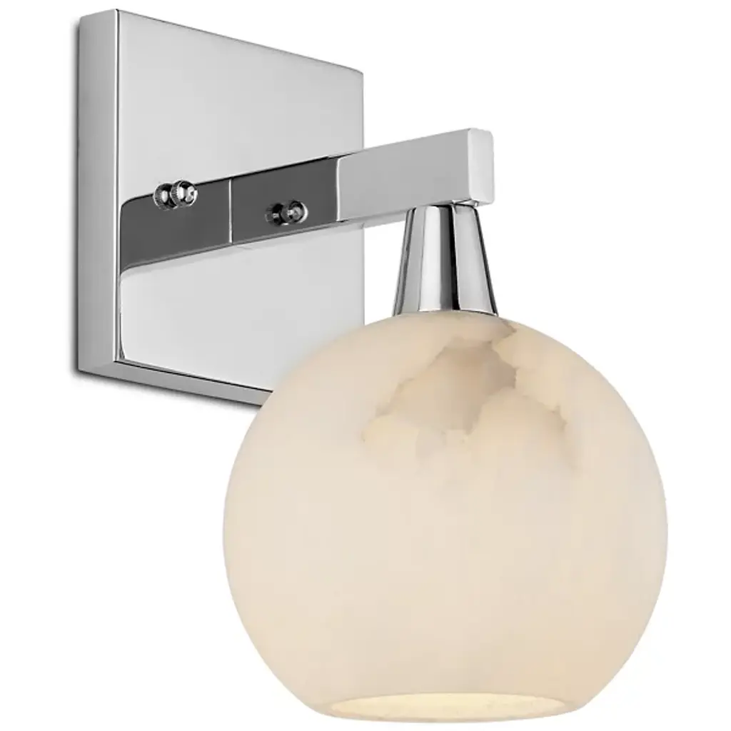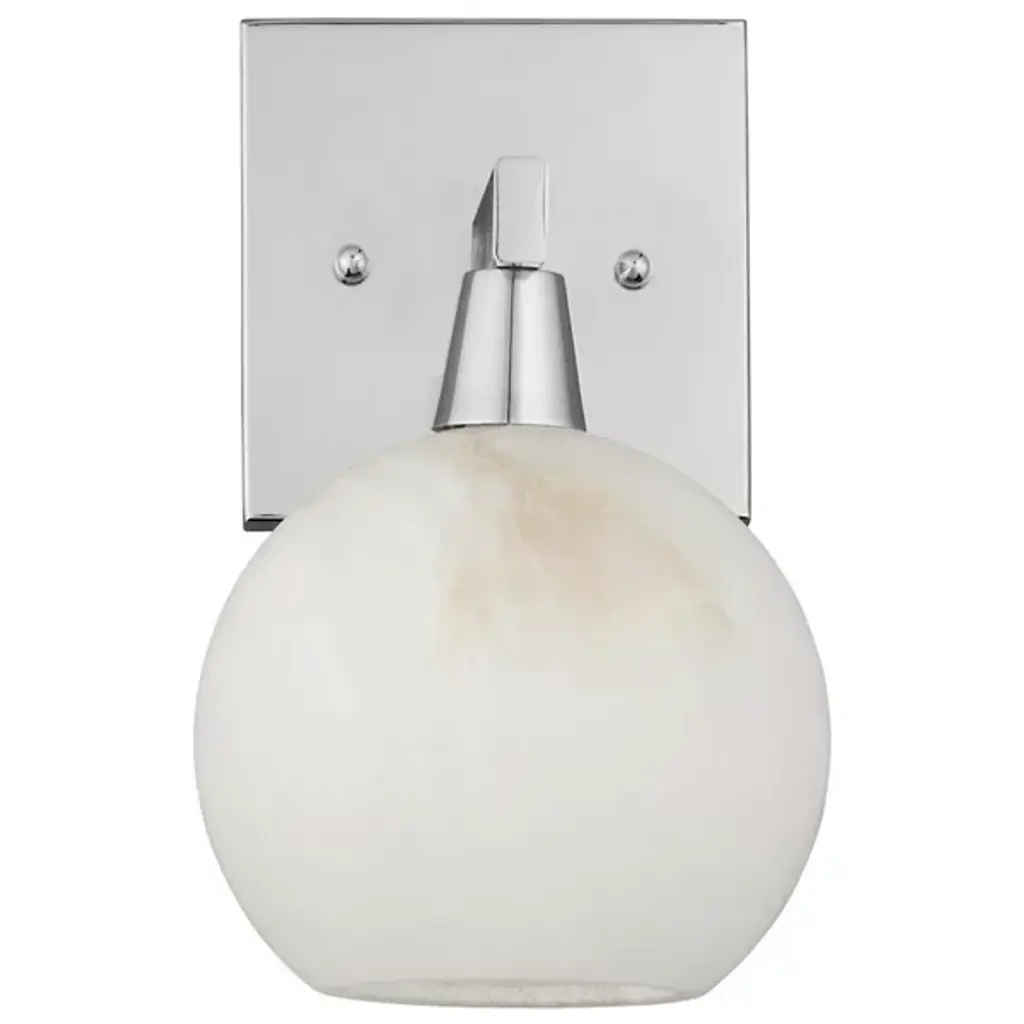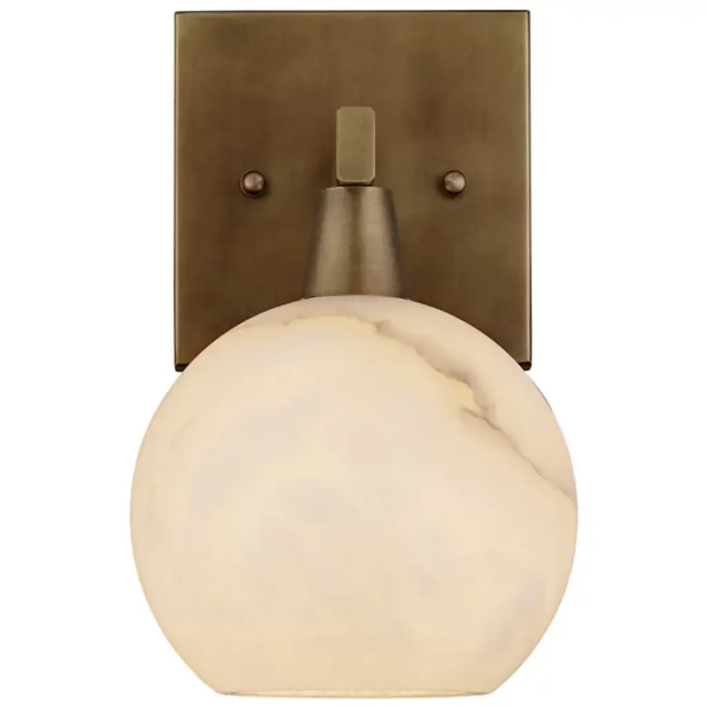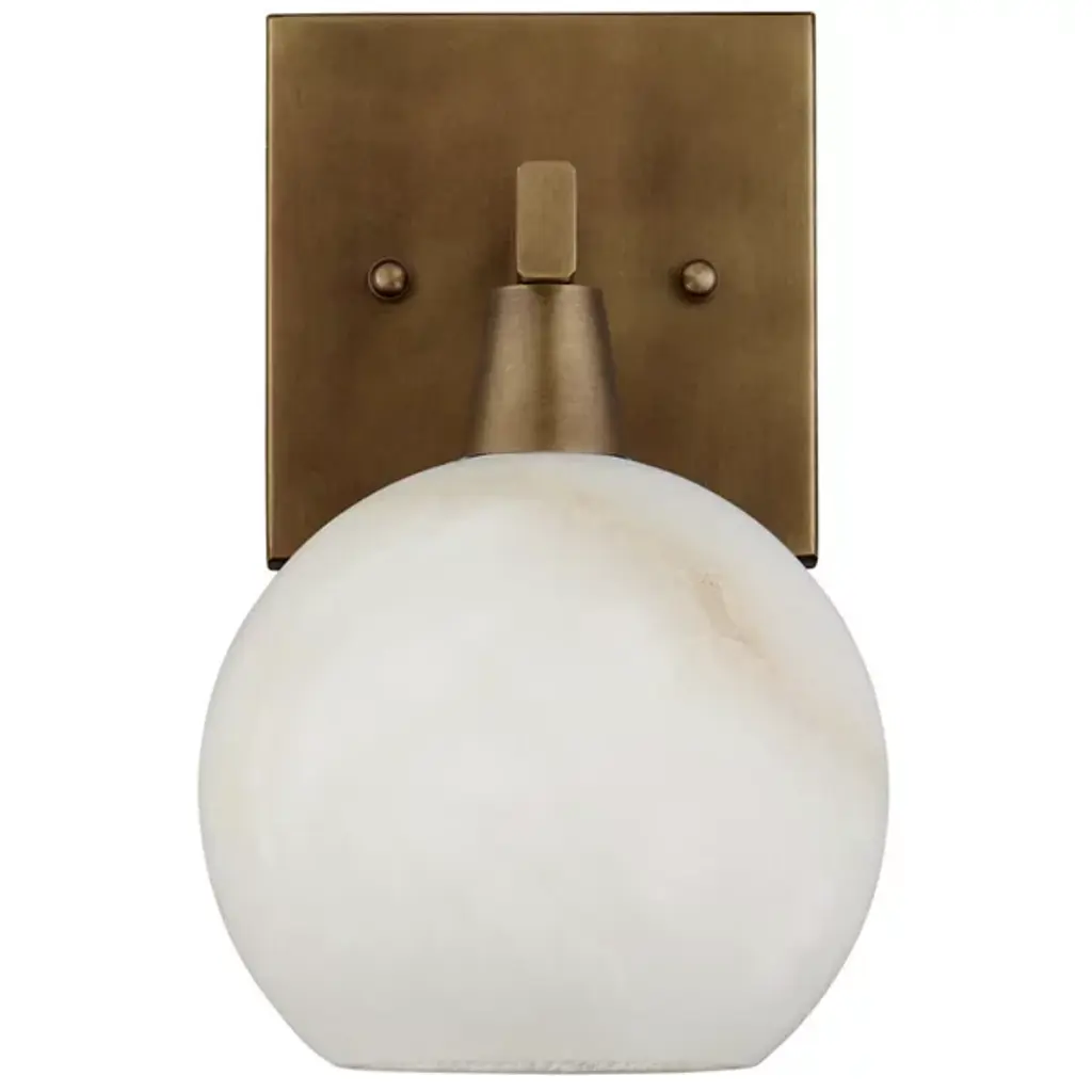 The Bombelles Bath Sconce from Currey & Company is crafted to illuminate bathroom counters with abundant light. Its natural alabaster globe emits a luminous glow when lit, complemented by an oil-rubbed bronze finish on the metal that adds warmth to its design. Each fixture boasts unique variations due to alabaster's natural properties, ensuring a bespoke touch. Versatile in installation, the Bombelles can be mounted with the globe pointing up or down, offering flexibility to suit various aesthetic preferences.