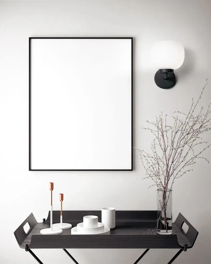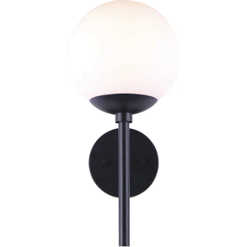 Bombo is a wall lamp in black painted metal with opal white blown glass diffuser.Technical information:- Light source: E27- Power: 1 x max 40w