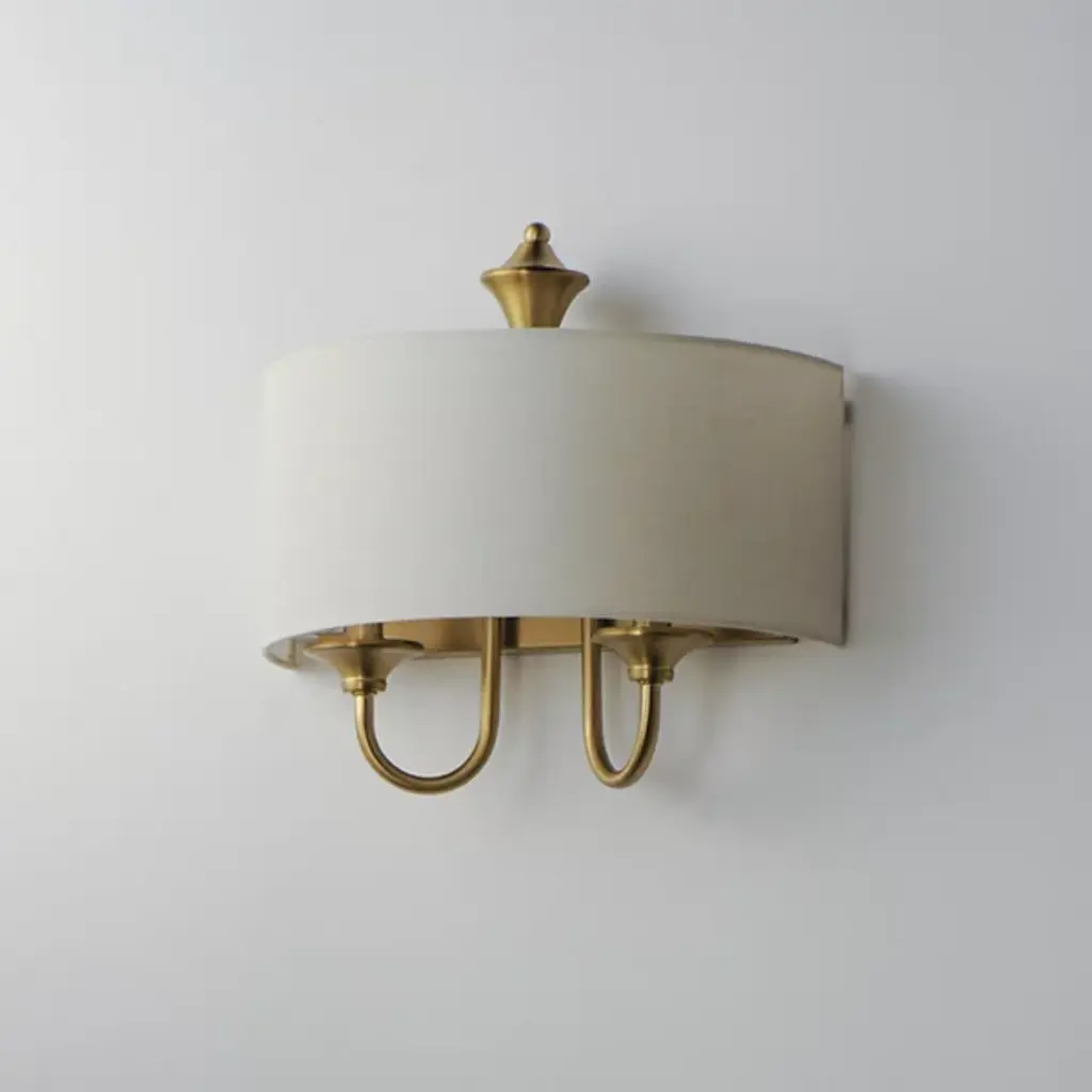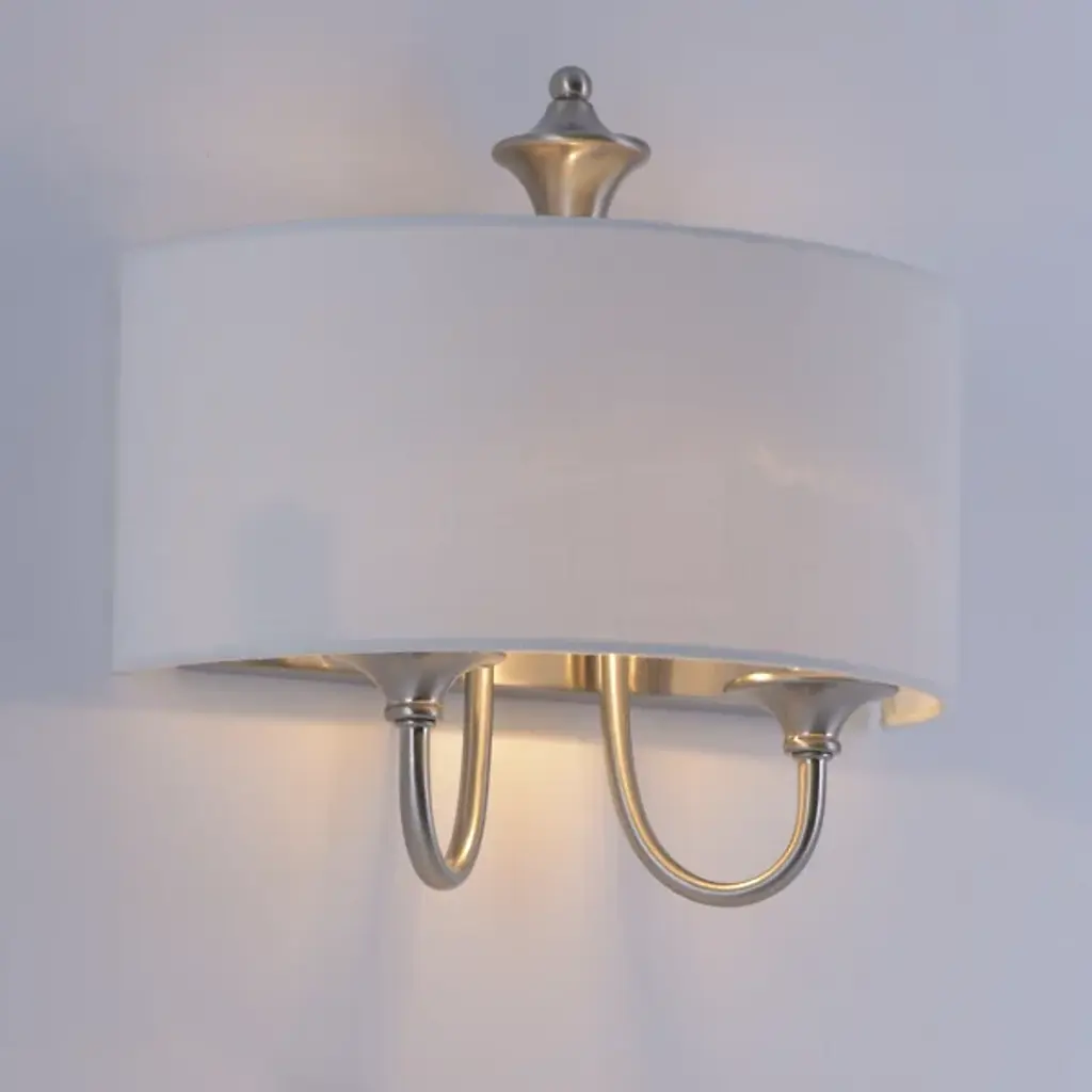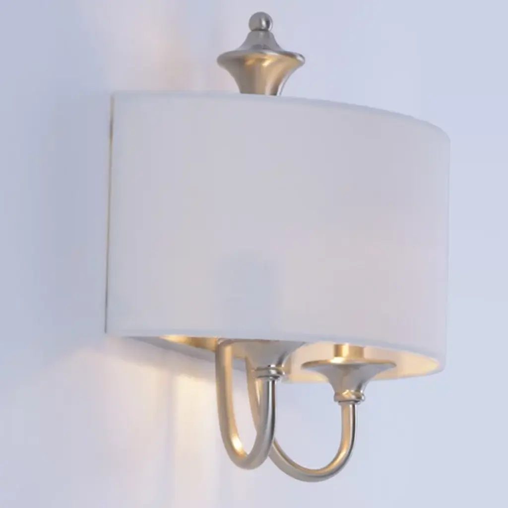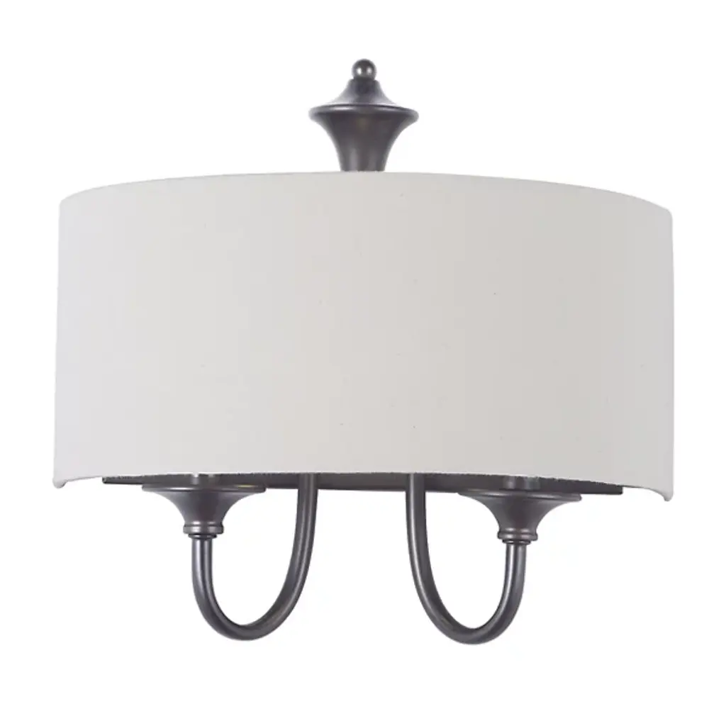 Elegant curves and subtle details allow the Bongo Wall Sconce from Maxim Lighting to stand out among the décor of your modern home. Mounting directly to the wall, the clean, half-circle fabric shade is accented by a pair of swooping arms that reveal themselves from within the shade, then rise again as they lead to candelabra-style bulbs. The light fills the shade with a warm and even touch of light that filters out into the perfect ambient glow.